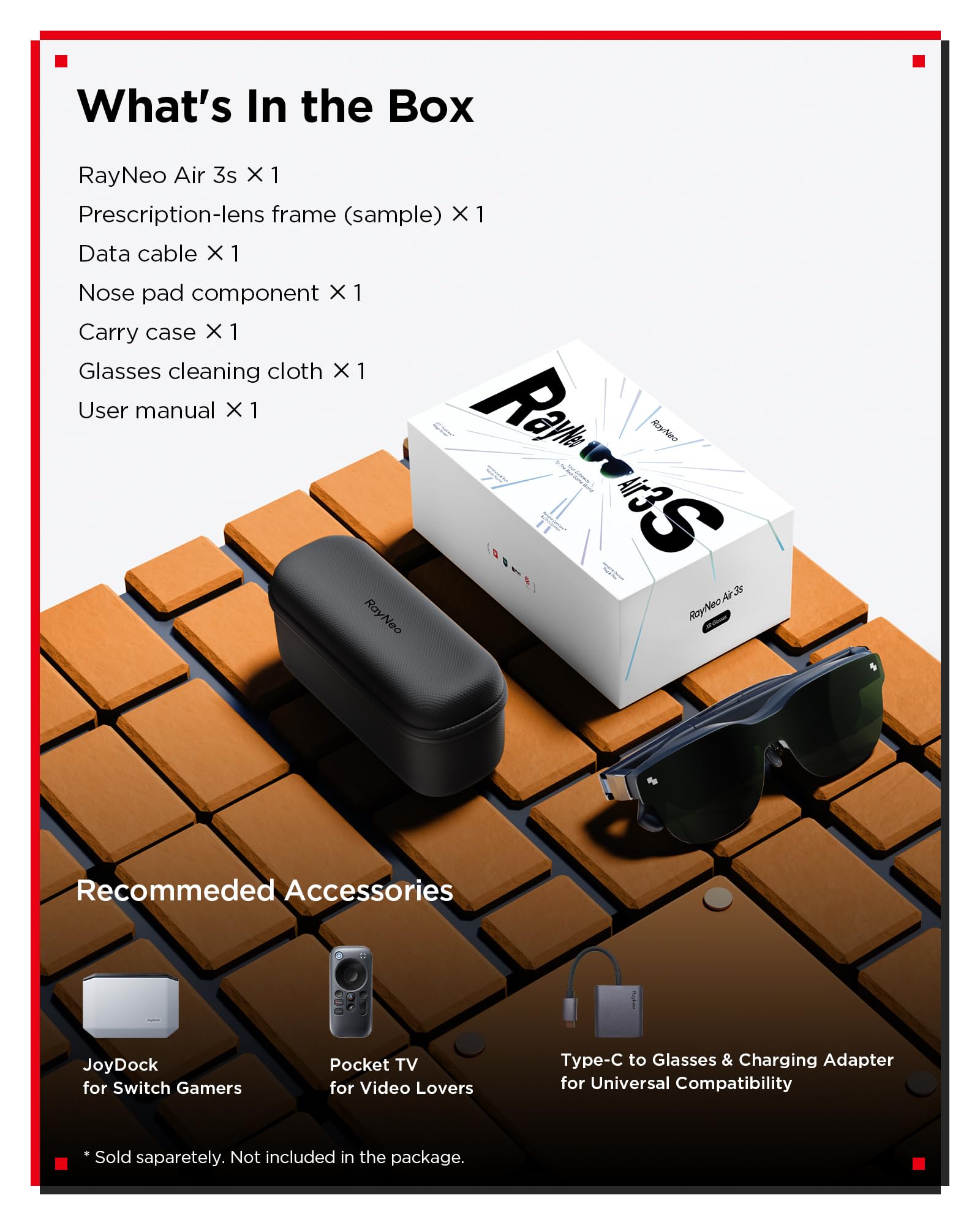 Details: The RayNeo Air 3s XR Glasses is a lightweight XR device with a 201-inch virtual screen, 3840Hz dimming, TÜV-certified eye comfort, four-speaker audio, 120Hz refresh rate, and HDMI 2.1 compatibility for smartphones, consoles (Switch/PS5), and PCs. Weighing 76g, it offers portable AR/VR experiences for movies, gaming, and productivity.