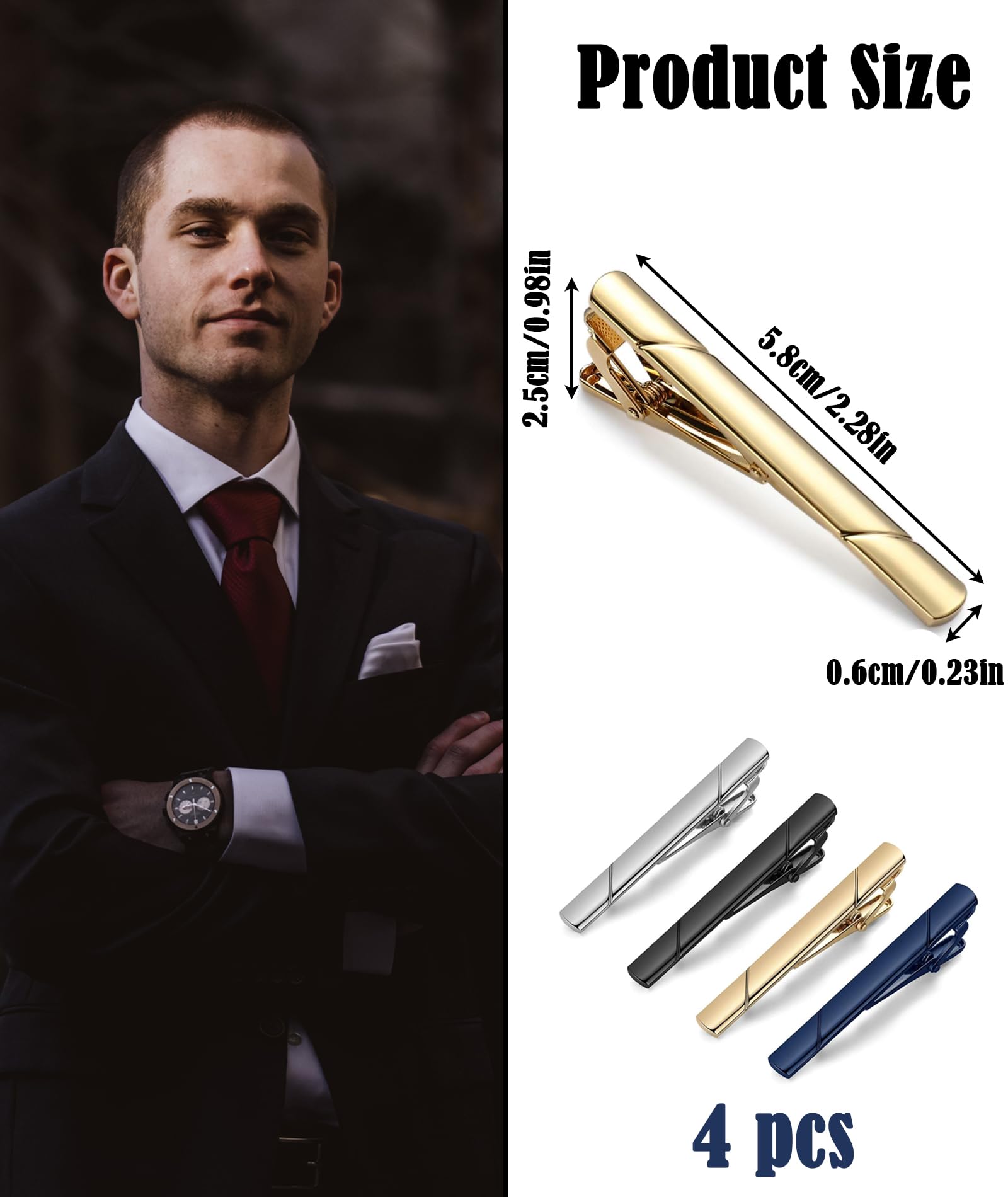4 Pcs Tie Pin, Tie Pin for Men Formal, Tie Clip for Men Plain Twill Tie Clip High-End Fashion Business Tie Clip Suitable for Formal Suit for Men (Black Silver Gold Blue)