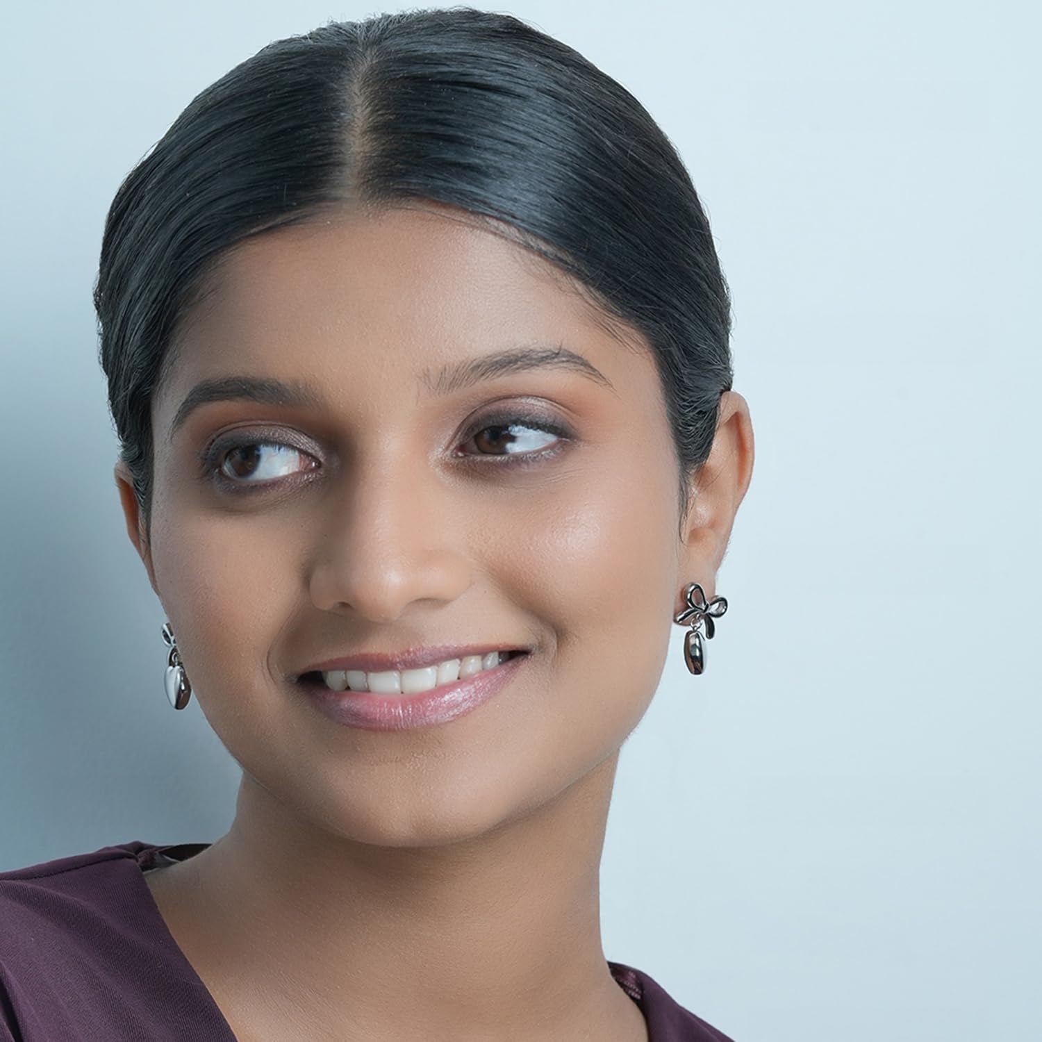 Aaishwarya 18K Silver Plated, Waterproof, Anti-Tarnish, Stainless Steel, Bow and Heart Drop Stud Earrings | Gift for Women and Girls