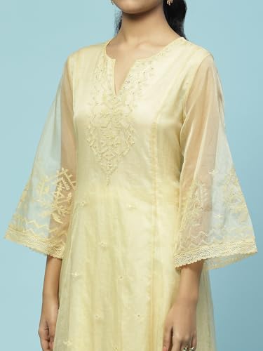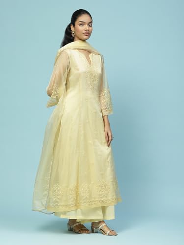 Aarke Ritu Kumar Yellow Embroidered Kurta With Palazzo And Dupatta