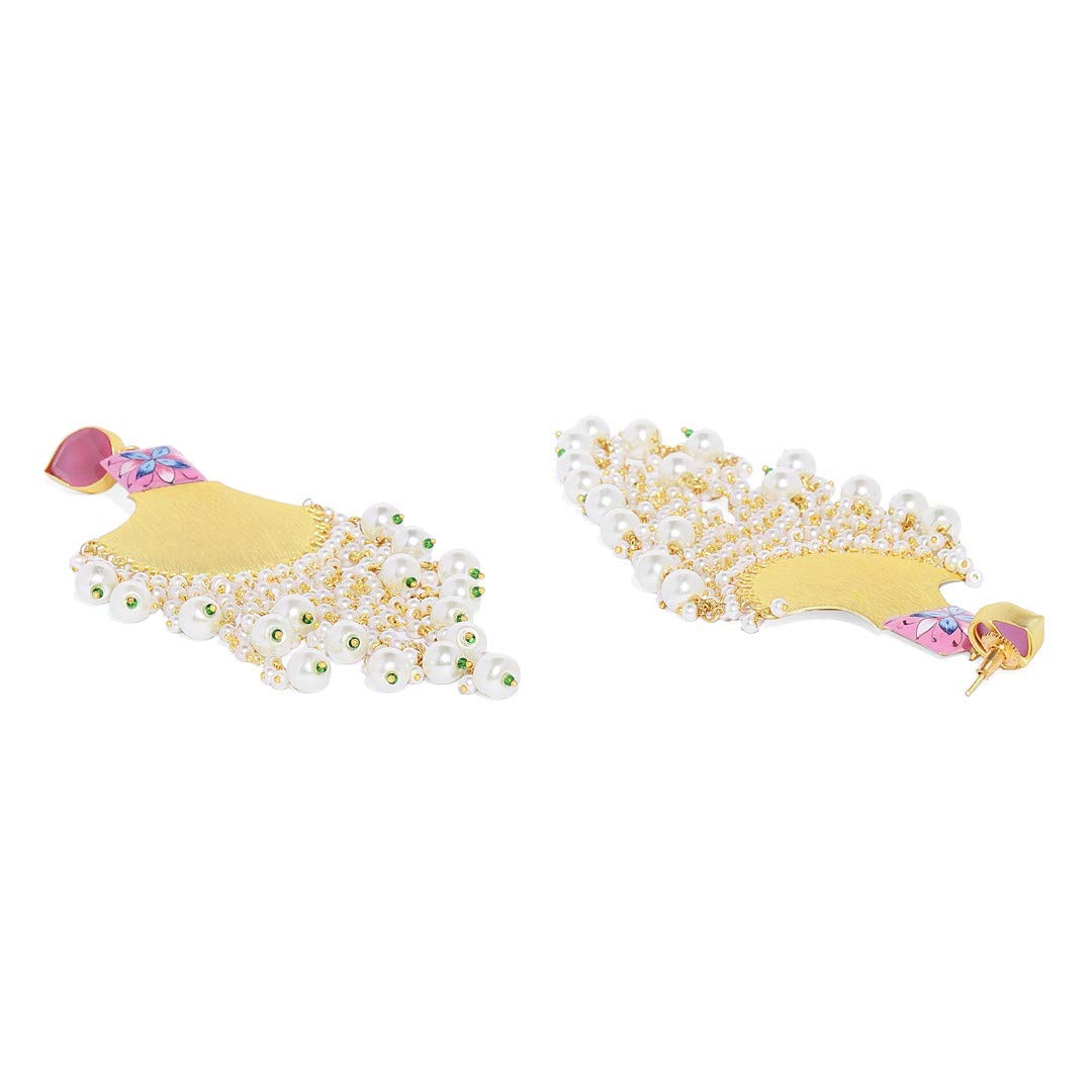 Accessher Gold Plated Statement Modern Chandbali Style Chandelier Dangle Earrings with Pearl Drop Tassels and Push Back Closure for Women and Girls Pack of 1 Pair