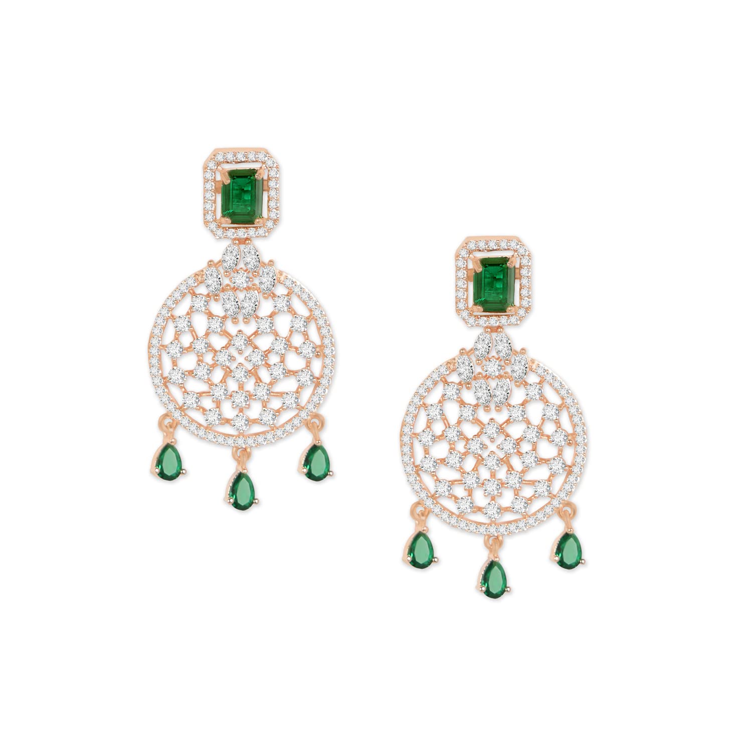 Accessher Rose Gold Plated American Diamond Studded Drop Earrings with Emerald Green Stones for Women | Elegant and Stylish Jewelry for Special Occasions