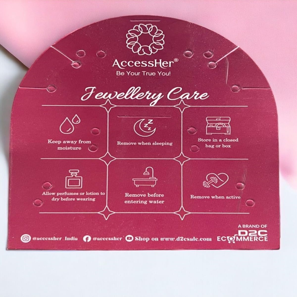 - Jewellery Care: Avoid direct contact with water, perfumes, and chemicals. Store in a dry, cool place