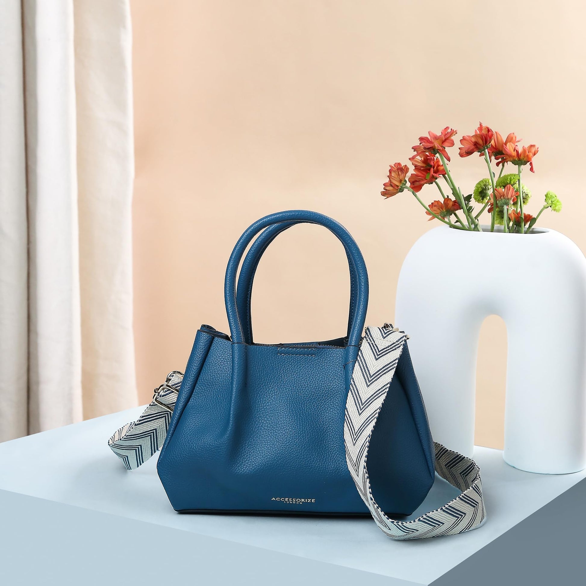 Accessorize London Women's Blue Soft Webbing Strap Sling Bag