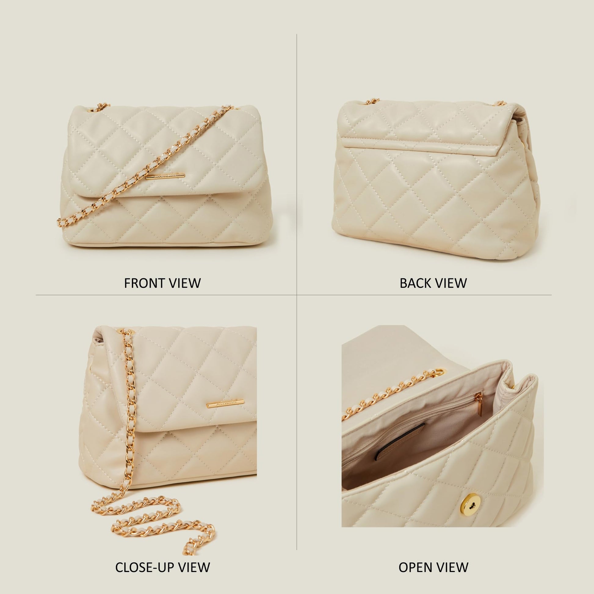 - STYLISH, LATEST HANDBAG FOR WOMEN: Adding a bit of edge to your daily outfits, we have the white Quilted Cross Body Bag premium faux leather finish. This is Accessorize London's go-to shoulder bag for stylish and modern women. Our sling bag for ladies from minimalistic to glam chic designed to empower women, we transform a range of styles into in-vogue handbags that can spruce up your look for any occasion. Inspired and created for the quintessential modern woman