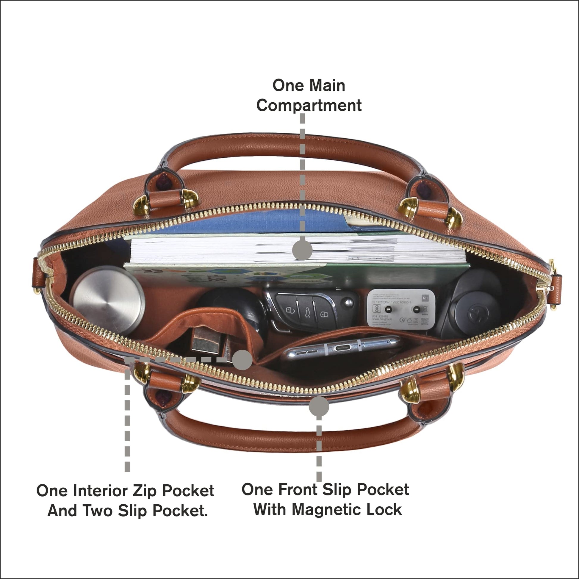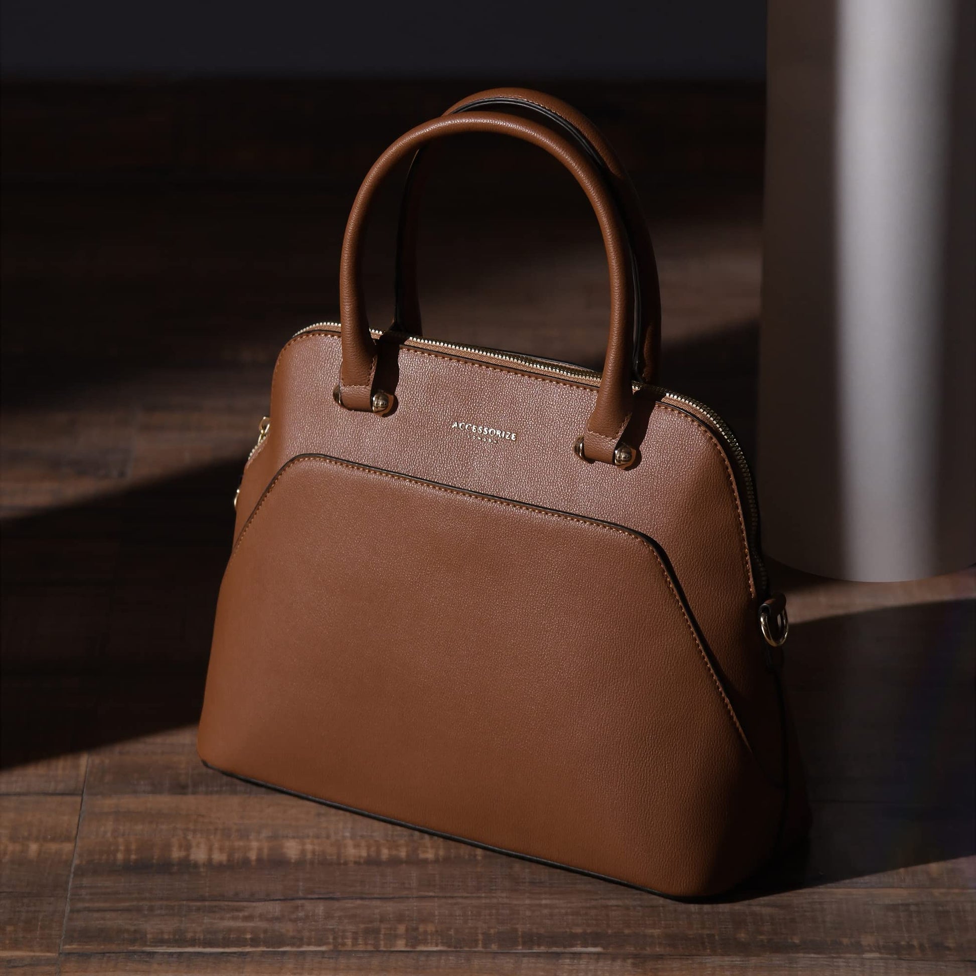 Accessorize London Women's Faux Brown Leather Thea handheld bag| Stylish Shoulder Bag|Tote Bag for casual |Office|College|Travel Use