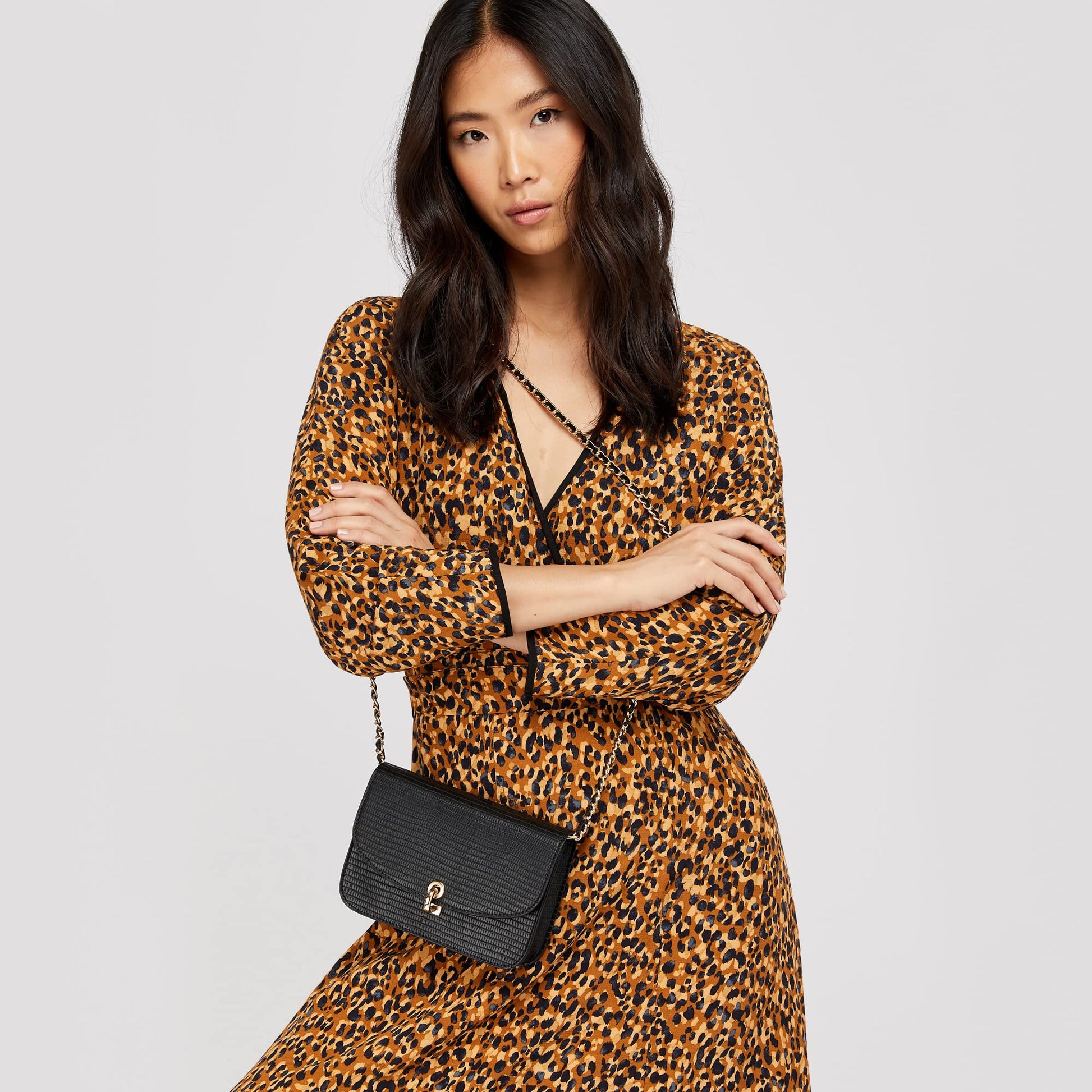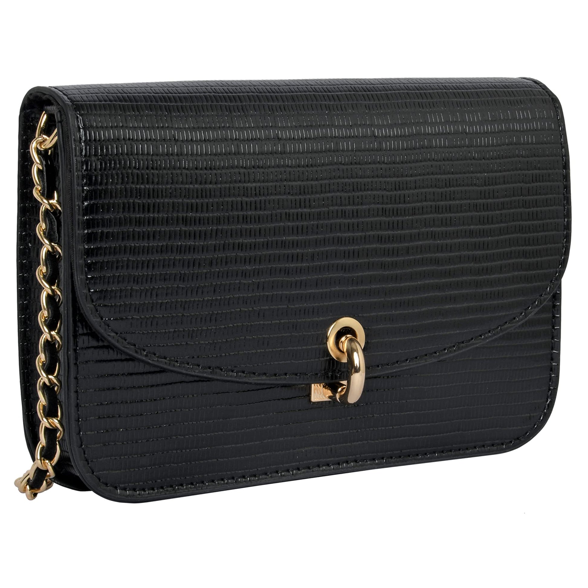 Accessorize London Women's Faux Leather Black Eddie Croc Sling Bag |Trendy Stylish Crossbody Bags For Daily Use | Messenger Bag