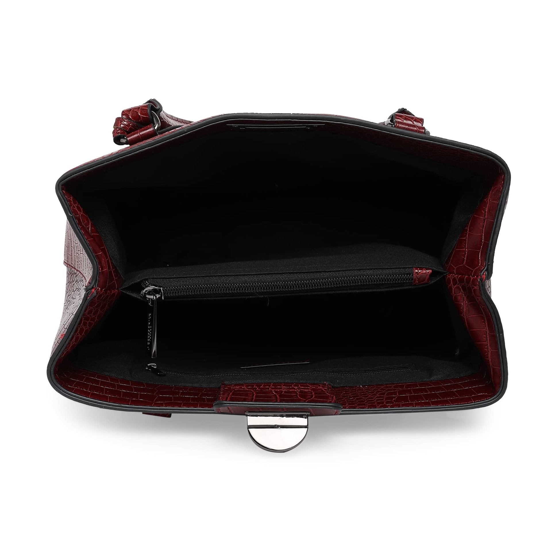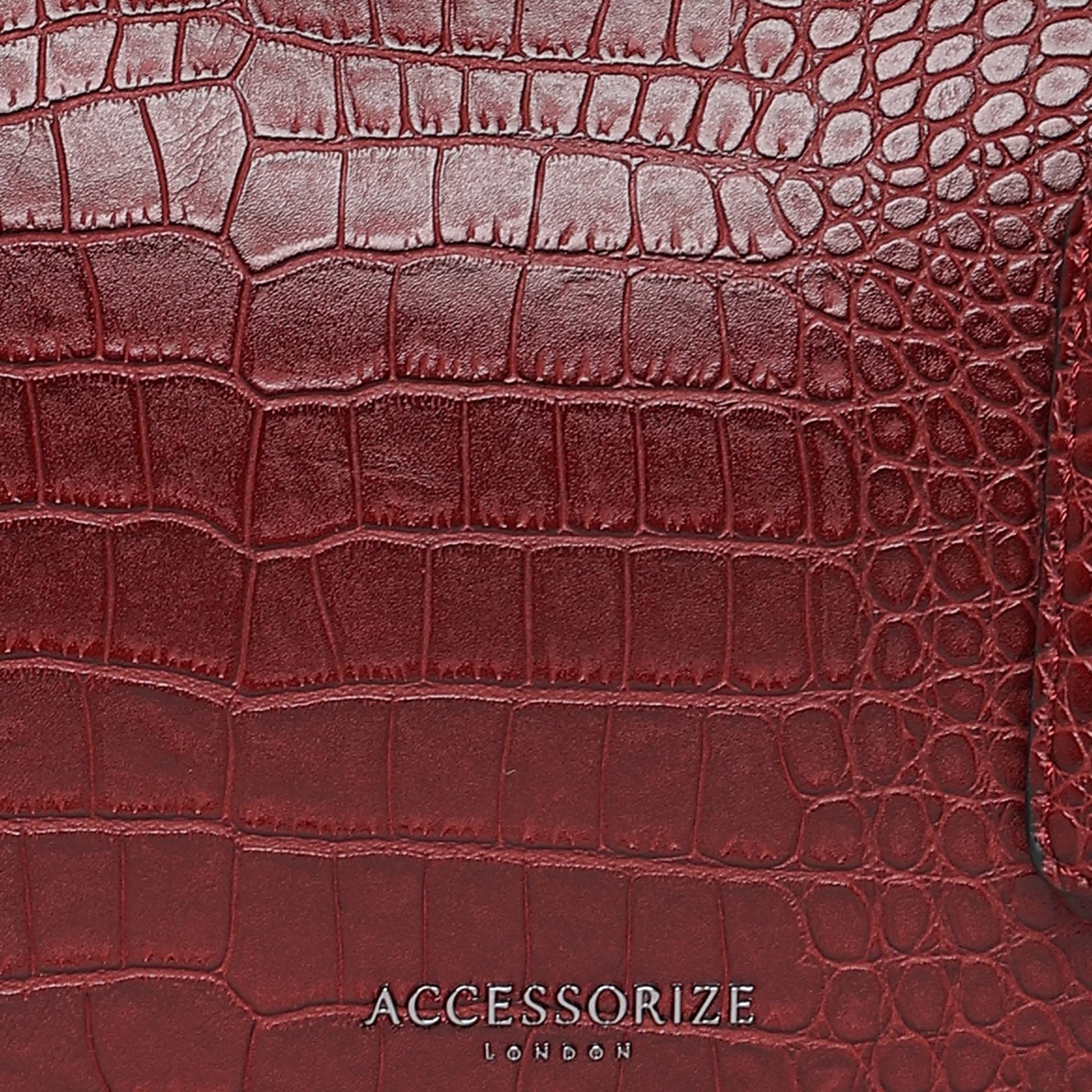 Accessorize London Women's Faux Leather Maroon Carolina Handheld Satchel Bag |Ladies Stylish Faux Leather Shoulder Hand Bag with Zipper Closure | Office College Travel Casual Use