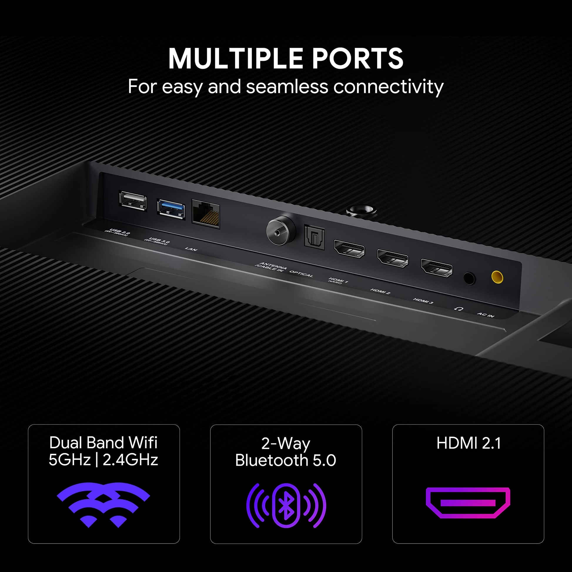 - Connectivity: 3 HDMI ports to connect latest gaming consoles, set top box, Blu-ray Players | 2 USB ports to connect hard drives and other USB devices | eARC - Dolby Atmos Passthrough eARC HDMI 1 port | Bluetooth 5.0 | SPDIF | Ethernet | Headphone out