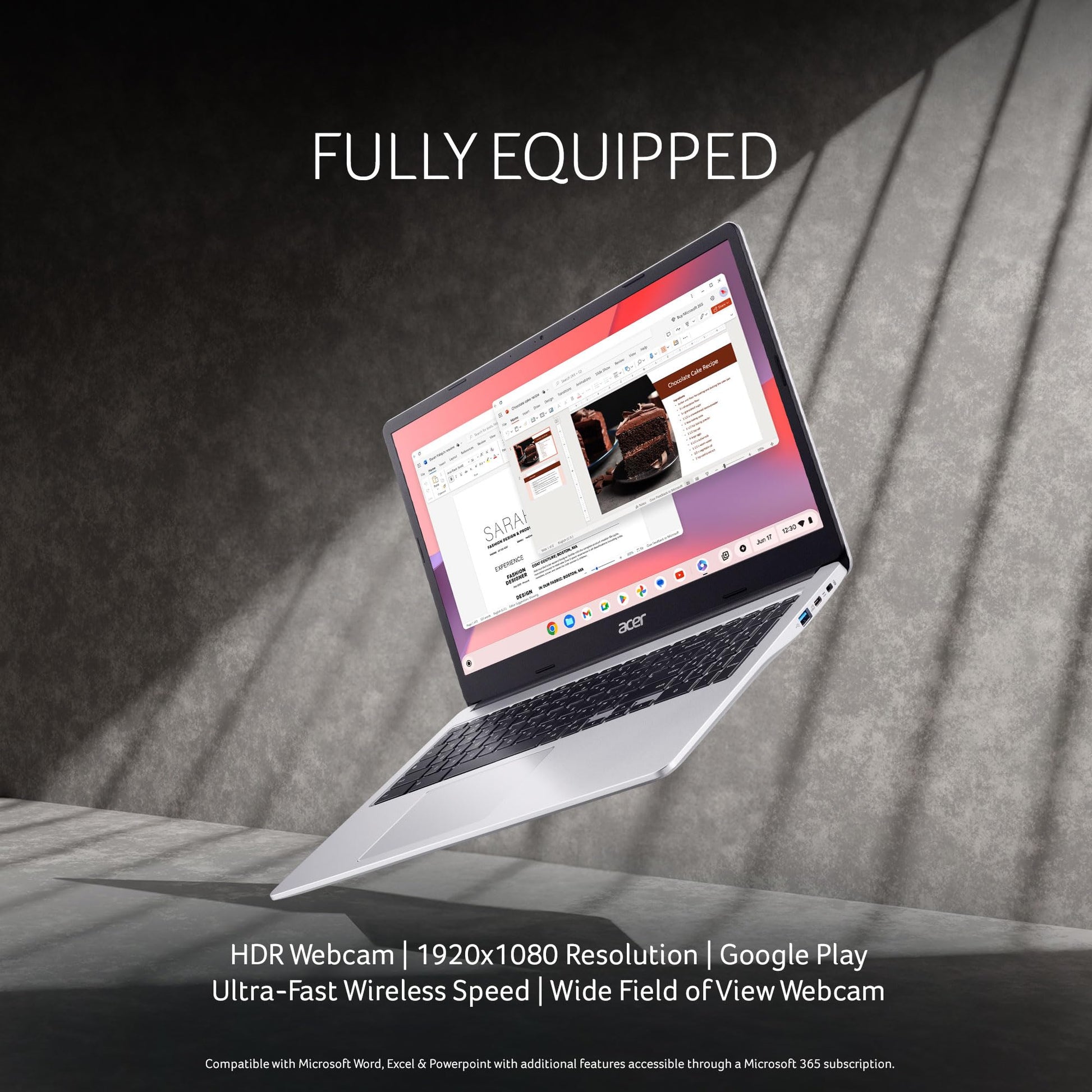 Acer Chromebook, Intel Celeron N4500, 8GB RAM, 128GB Storage, Full HD, 15.6"/39.6cm, Chrome OS, Silver, 1.6KG, CB315-4H, WiFi 6,3 Months Google One AI Premium Plan& 2TB Cloud Storage AI Powered Laptop