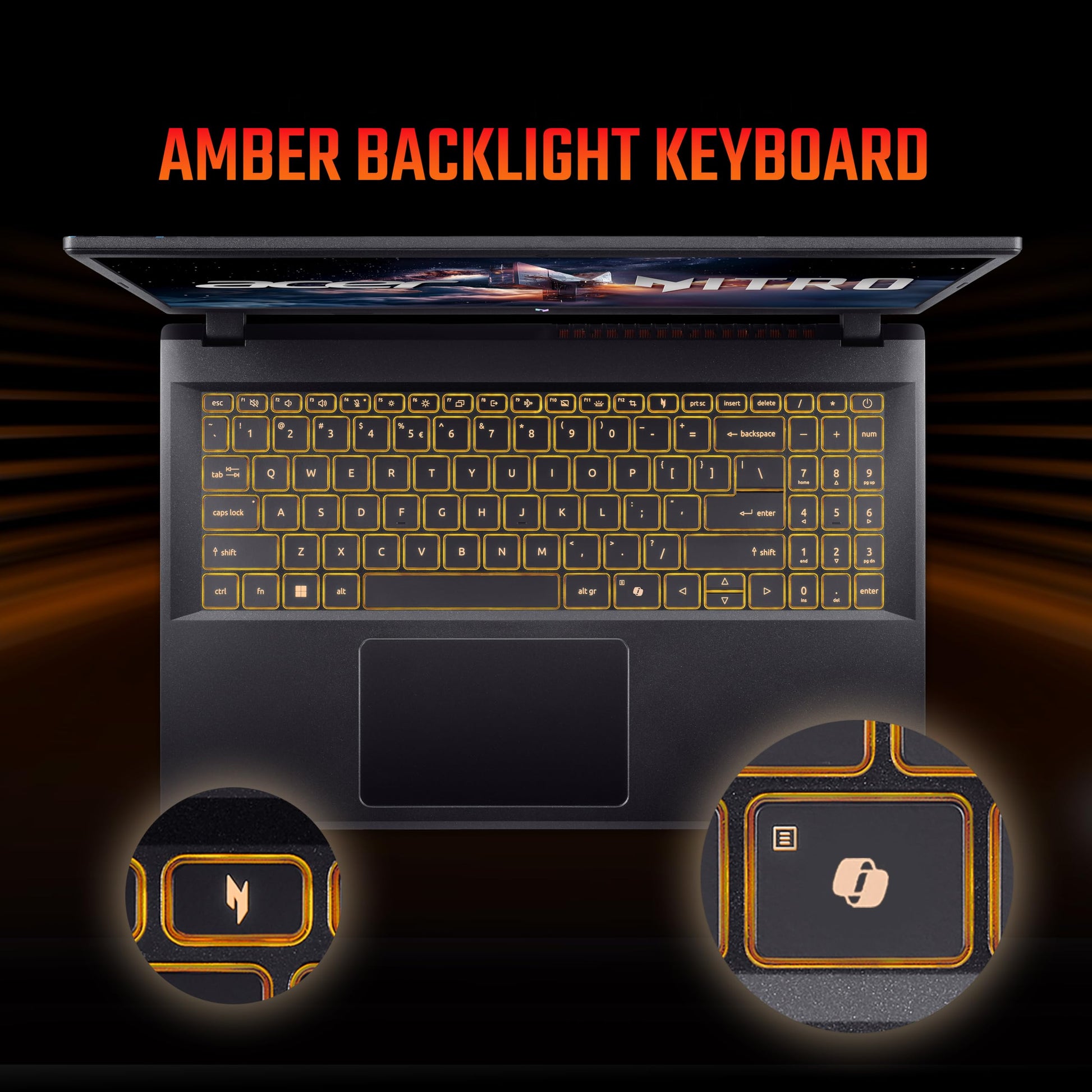 - Keyboard - 99-/100-/103-key Acer amber backlight keyboard with international language support, NitroSense key, Copilot key, indicators of CapsLock and F4/Microphone mute