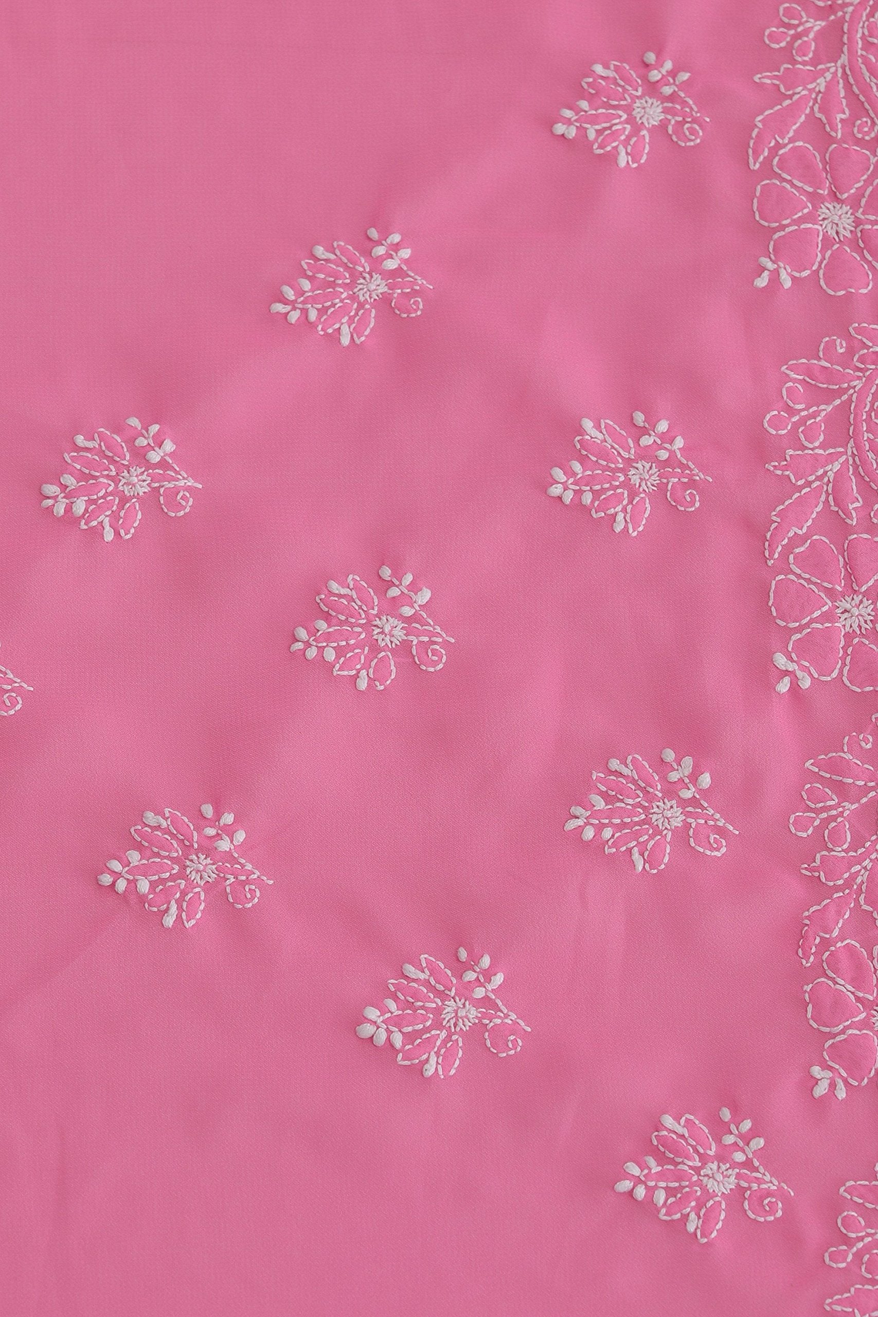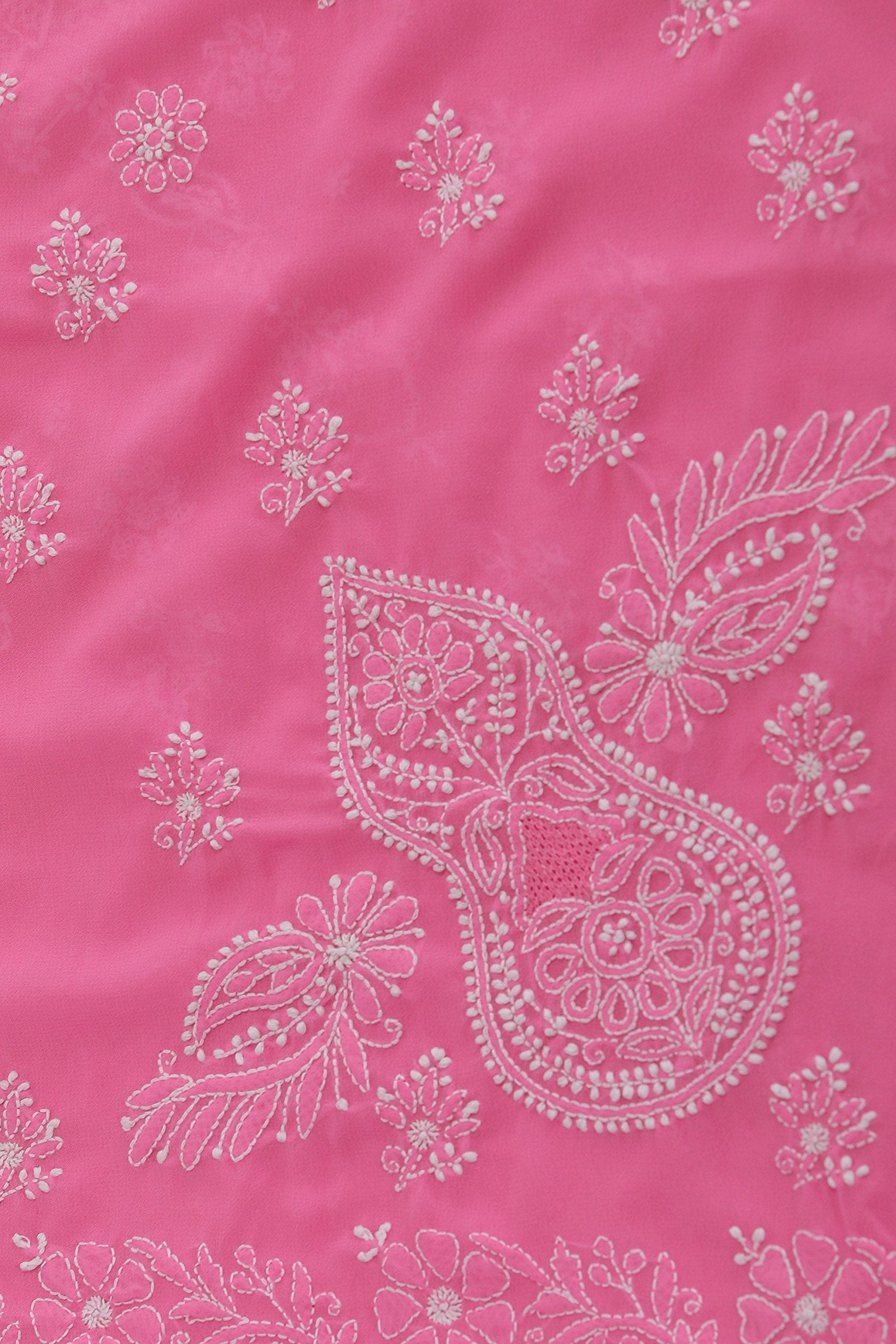 Ada Hand Embroidered Lucknow Chikan Faux Georgette Women's Chikan Saree With Blouse A130252 Pink