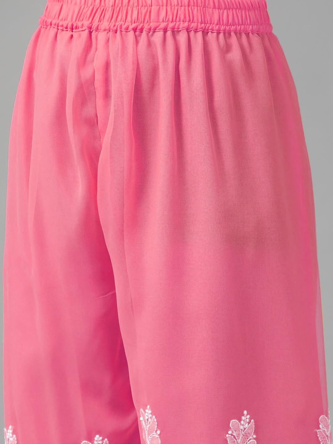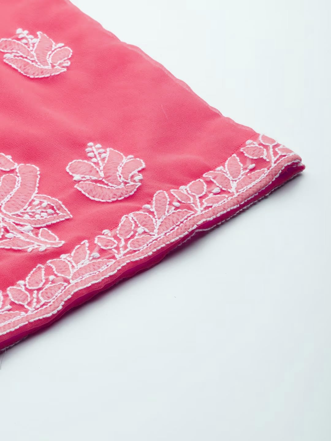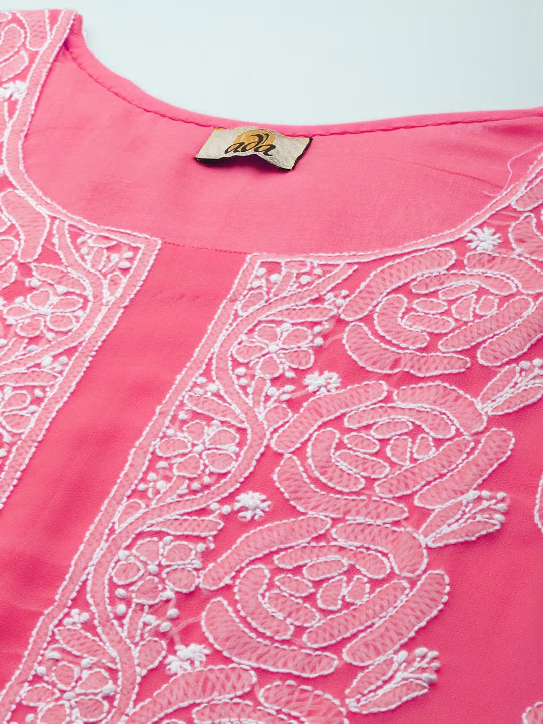 Ada Hand Embroidered Lucknow Chikankari Unstitched Georgette Dress Material Suit Set for Women A211319 Pink