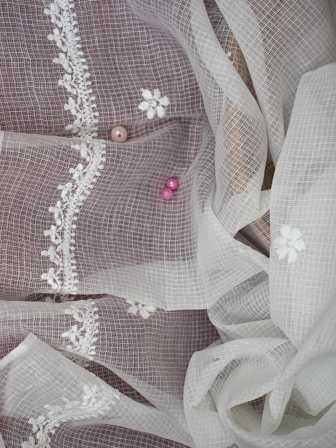 This white kota dupatta is the most comfortable and soft fabric texture. This pre-washed Dupatta showcases the elegance and charm of the Chikankari, pair it with any kurti and carry your own style; you end up looking quite classy as you want to be.