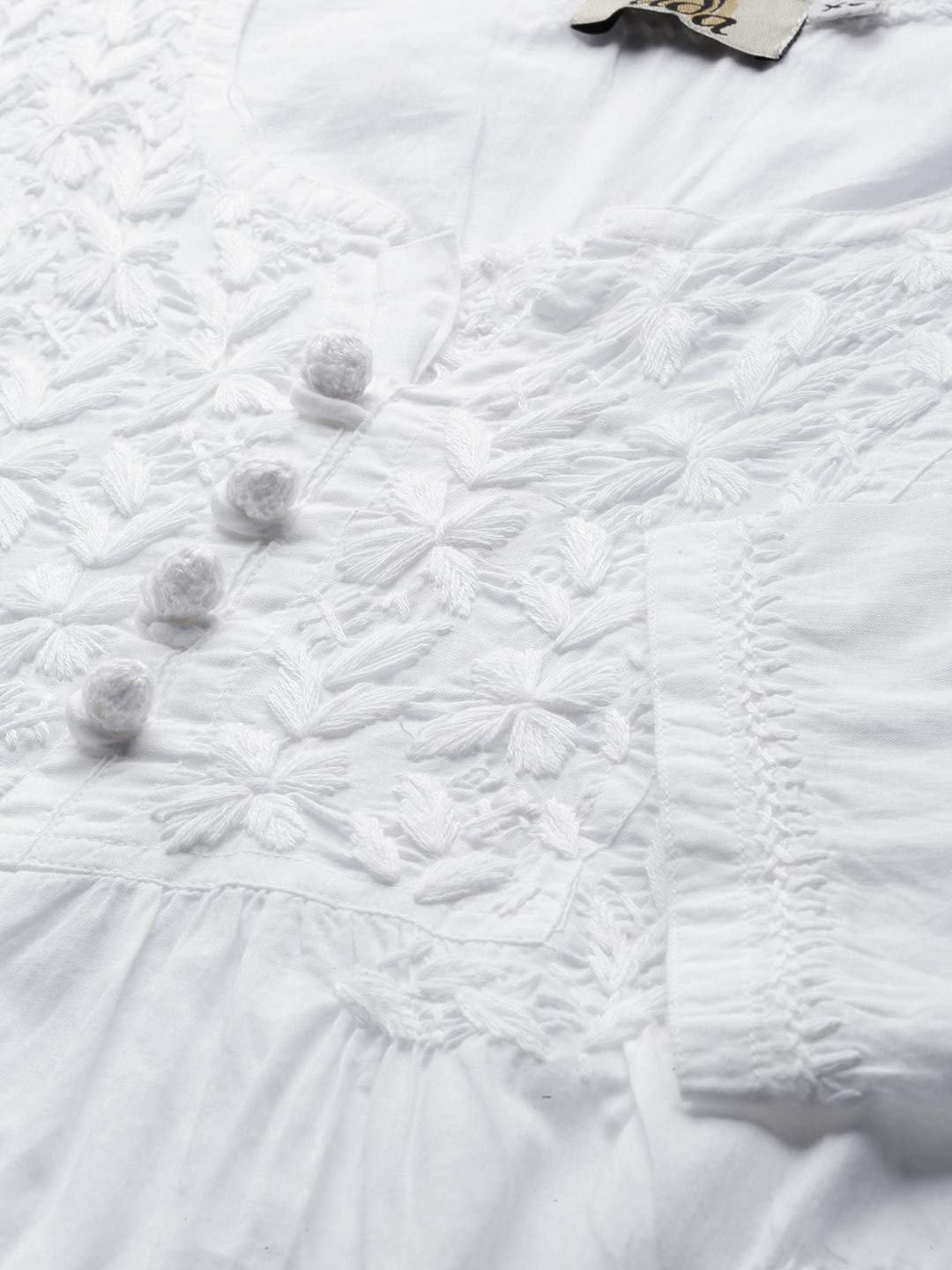 Details: This comfortable White cotton Lucknowi top envelops the body with a sensual touch and is divinely soft and feminine . This kurti is sure to become your closet favourite. Team it up with a pair of solid palazzos or jeans and heels or flats for a chic ensemble. At Ada we are dealing with needle craft which is GI mapped and recognized by Trips internationally which is multiple washed leaving the product free of colour bleeding and shrinkage. Since products are pre washed they cannot match the artificial quote / finish of a factory finish.