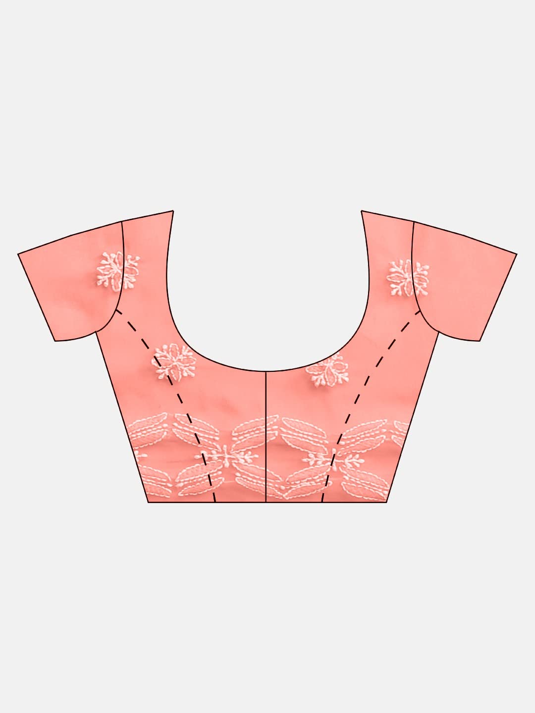 Ada Hand Embroidered Lucknowi Chikankari Georgette Saree With Unstitched Blouse Piece A191488, Peach - Womens