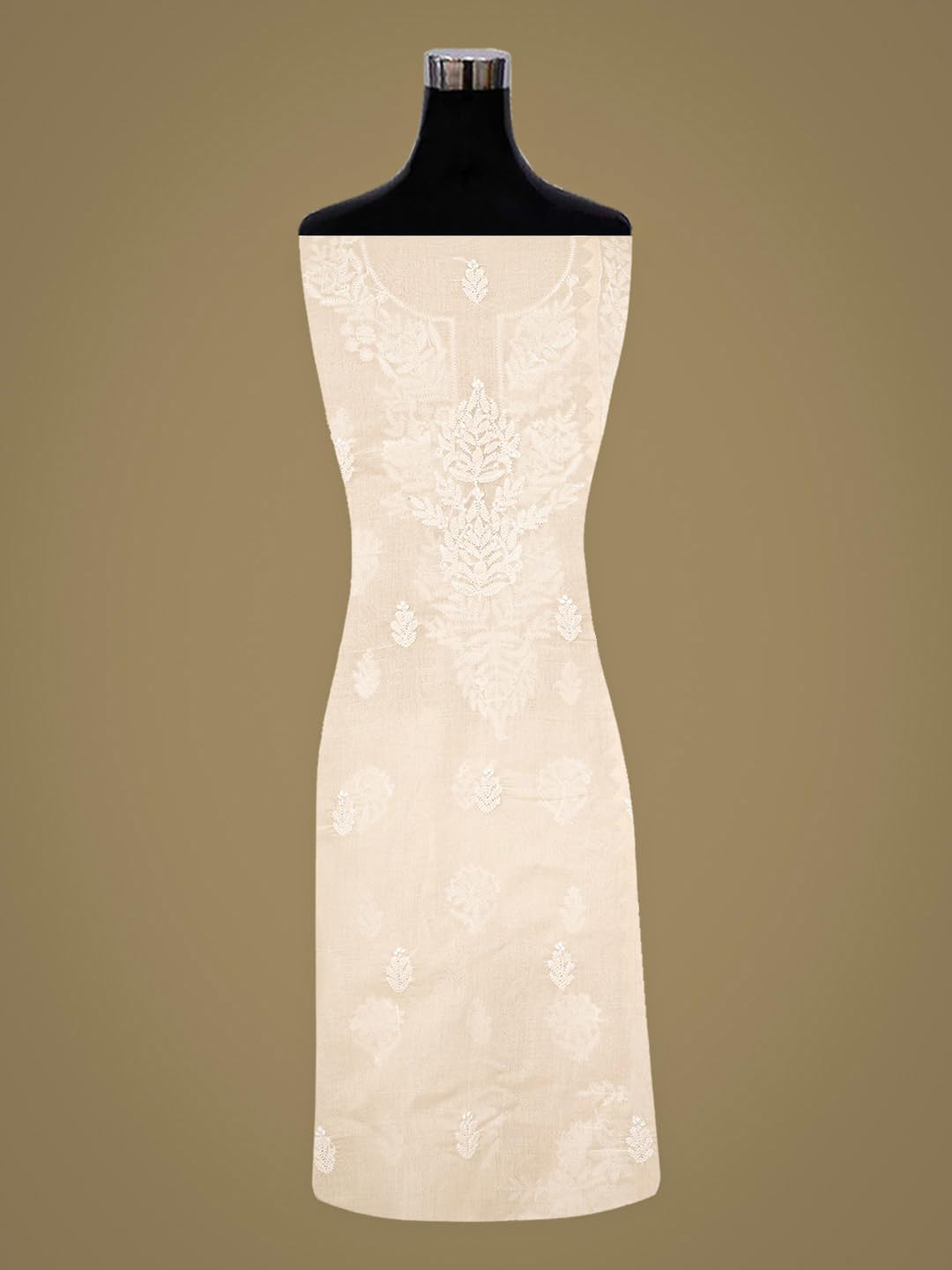 Ada Hand Embroidered Lucknowi Chikankari Unstitched Cotton Dress Material Suit Piece with Dupatta for Women 01A871559 Peach
