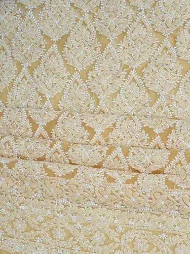 Ada Hand Embroidered Lucknowi Chikankari Unstitched Georgette Dress Material Suit Piece with Dupatta for Women 01A835660 Fawn