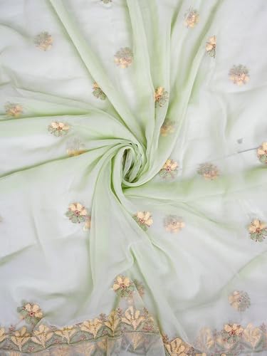 Ada Hand Embroidered Lucknowi Chikankari Unstitched Georgette Dress Material Suit Piece with Dupatta for Women 01A896014 Pista Green