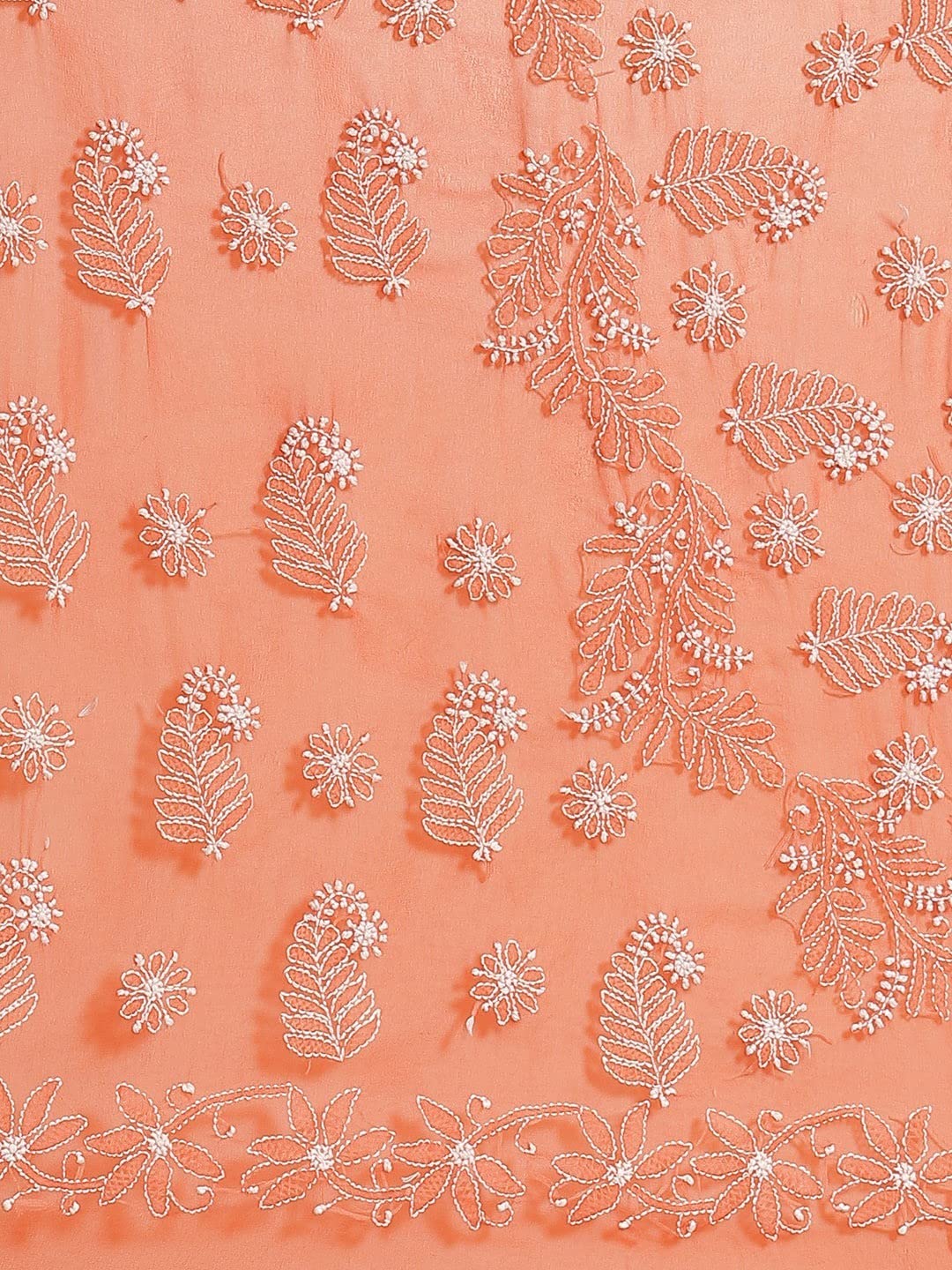 Ada Women's Hand Embroidered Lucknow Chikan Faux Georgette Saree with Unstitched Blouse A250039, Orange