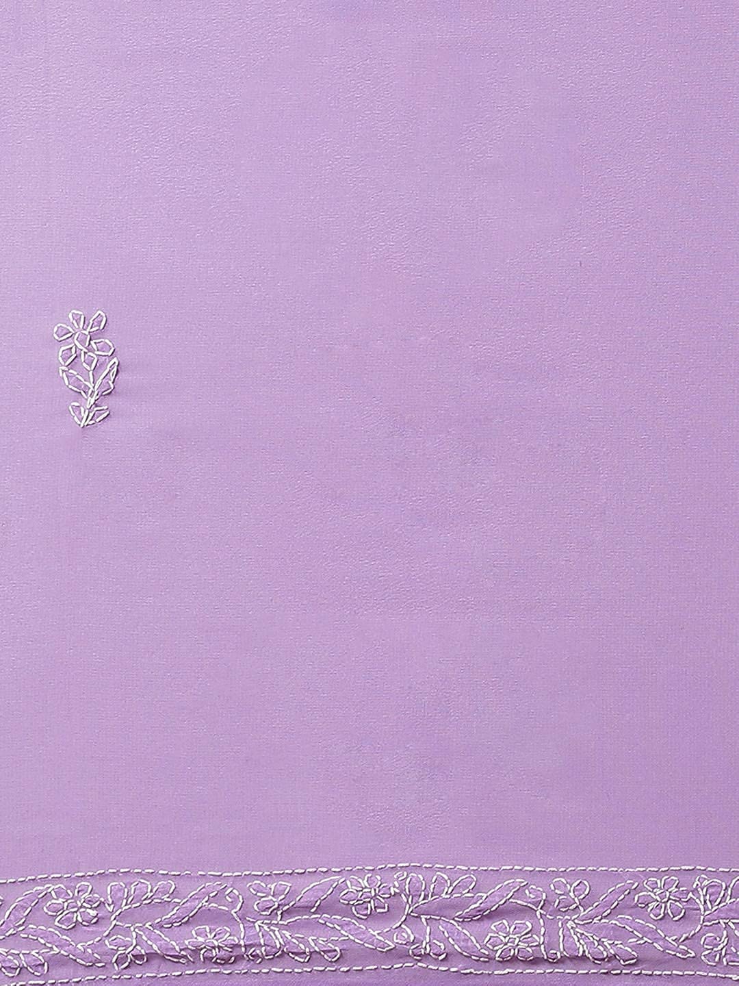 Ada Women's Hand Embroidered Lucknowi Chikan Faux Georgette Saree with Blouse A183248 Mauve