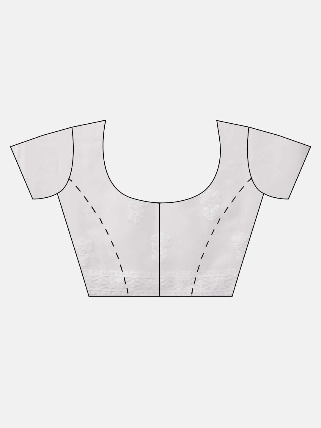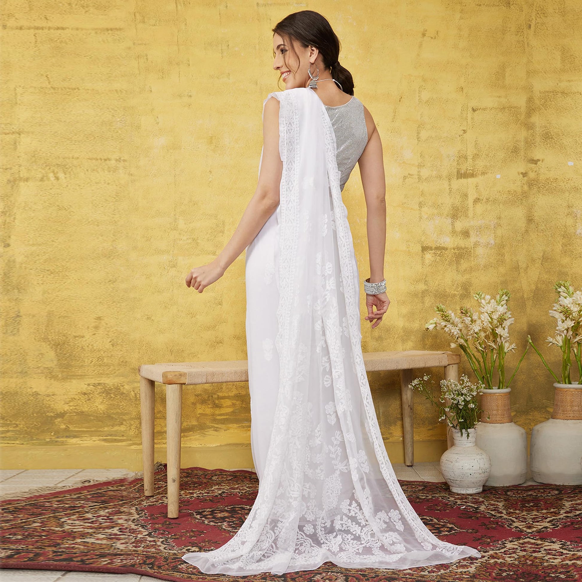 Ada Women's Handmade Lucknow Chikankari White Georgette Saree with Unstitched Blouse A129574