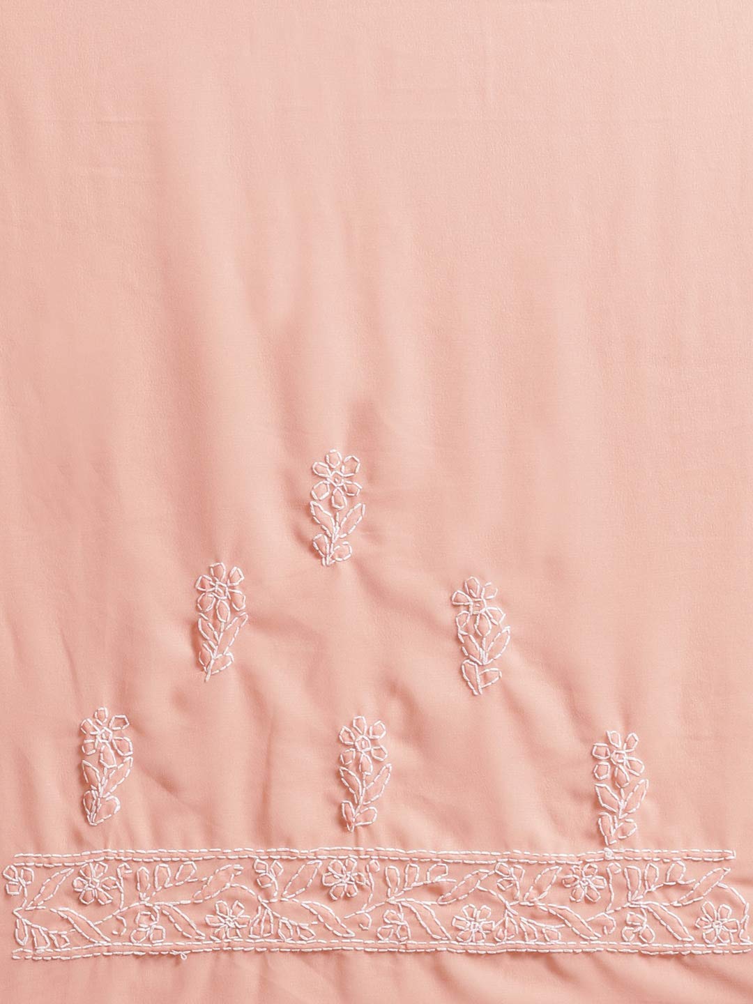 Ada Women's Handmade Lucknowi Chikankari Faux Georgette Saree with Blouse A191789 Peach