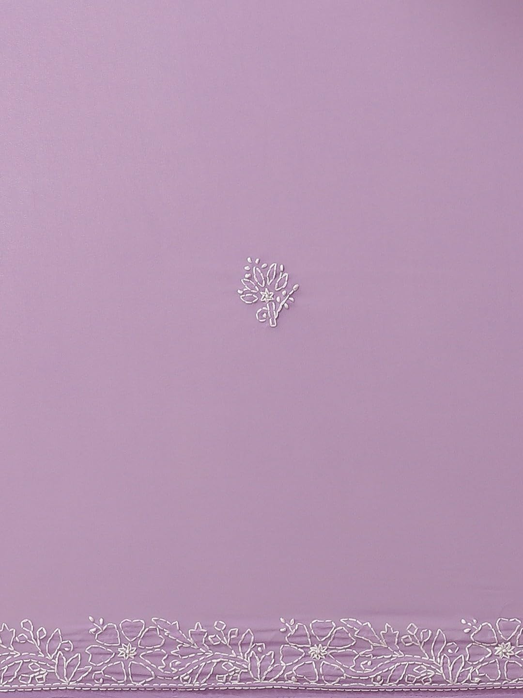 Touch and feel : Smooth and Comfortable Dress up for the upcoming event in this exquisite Mauve hand embroidered Faux Georgette saree exclusively designed to serve the fashion needs of every modern girl. Holding the glimpse of Lucknowi Magic, this saree will surely make you the attraction of the event. Featured with delicate stitches like ‘Bakhiya’, ‘Phanda’, ‘Jaali’ and ‘Keel Kangan’ crafted using white cotton thread, this beautiful drape outfit is an elegant selection for social events and family get together. One can customise the blouse in a sensational style to add a touch of glam. Pair it with high heels and you are ready to go. Disclaimer : : Blouse Shown for Photo shoot Purposes . Running Blouse Fabric within the saree. At Ada we are dealing with needle craft which is GI mapped and recognized by Trips internationally which is multiple washed leaving the product free of colour bleeding and shrinkage. Since products are pre washed they cannot match the artificial quote / finish of a factory finish.