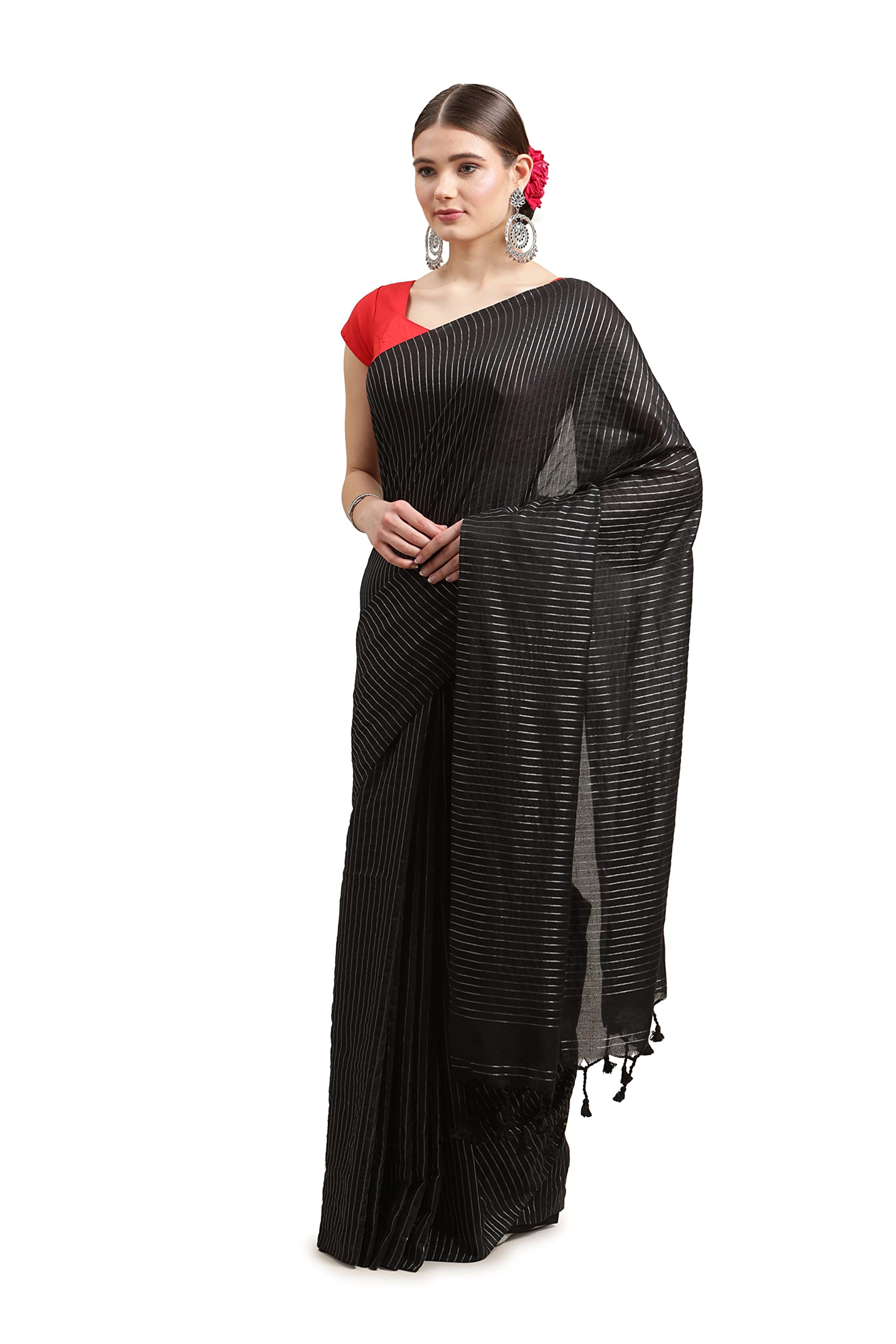 Aditri Women's Handloom Cotton Saree with Running Blouse (Multicolored)