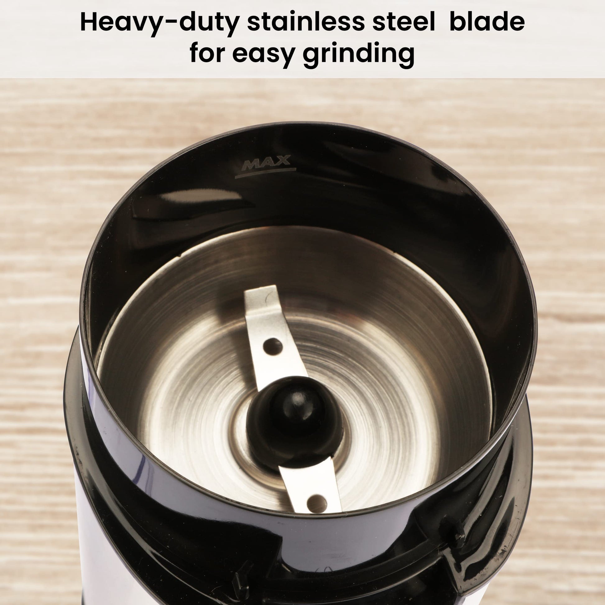 AGARO Grand Electric Coffee Grinder, Stainless Steel Blades, Grinds up to 60 Grams Dry Coffee Beans, Portable, Silver