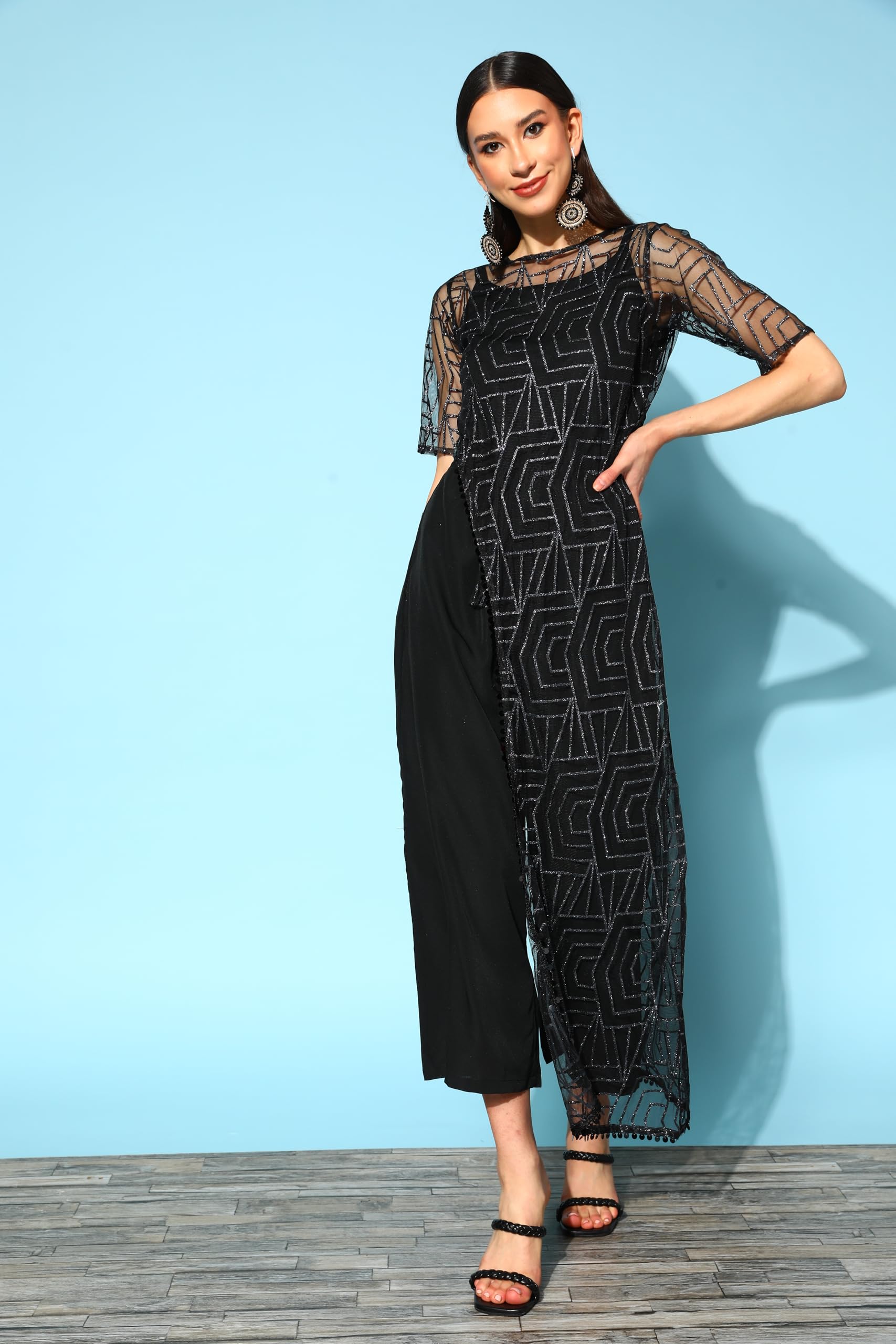 Ahalyaa Black Color Polyester Printed Jumpsuit