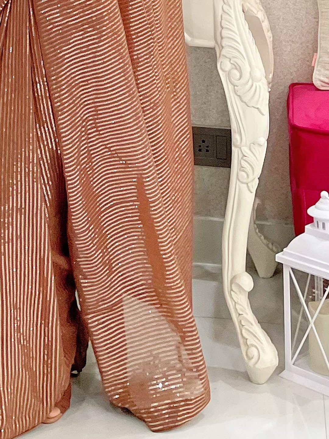 AKHILAM Women's Brown Georgette Sequins Embellished Saree with Unstitched Blouse Piece (KESARI7203_KR)