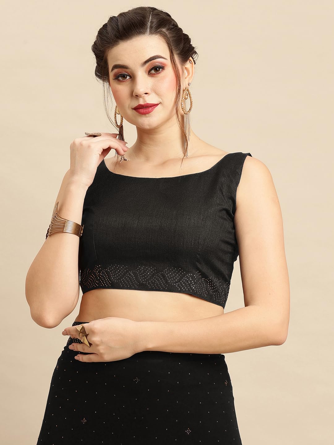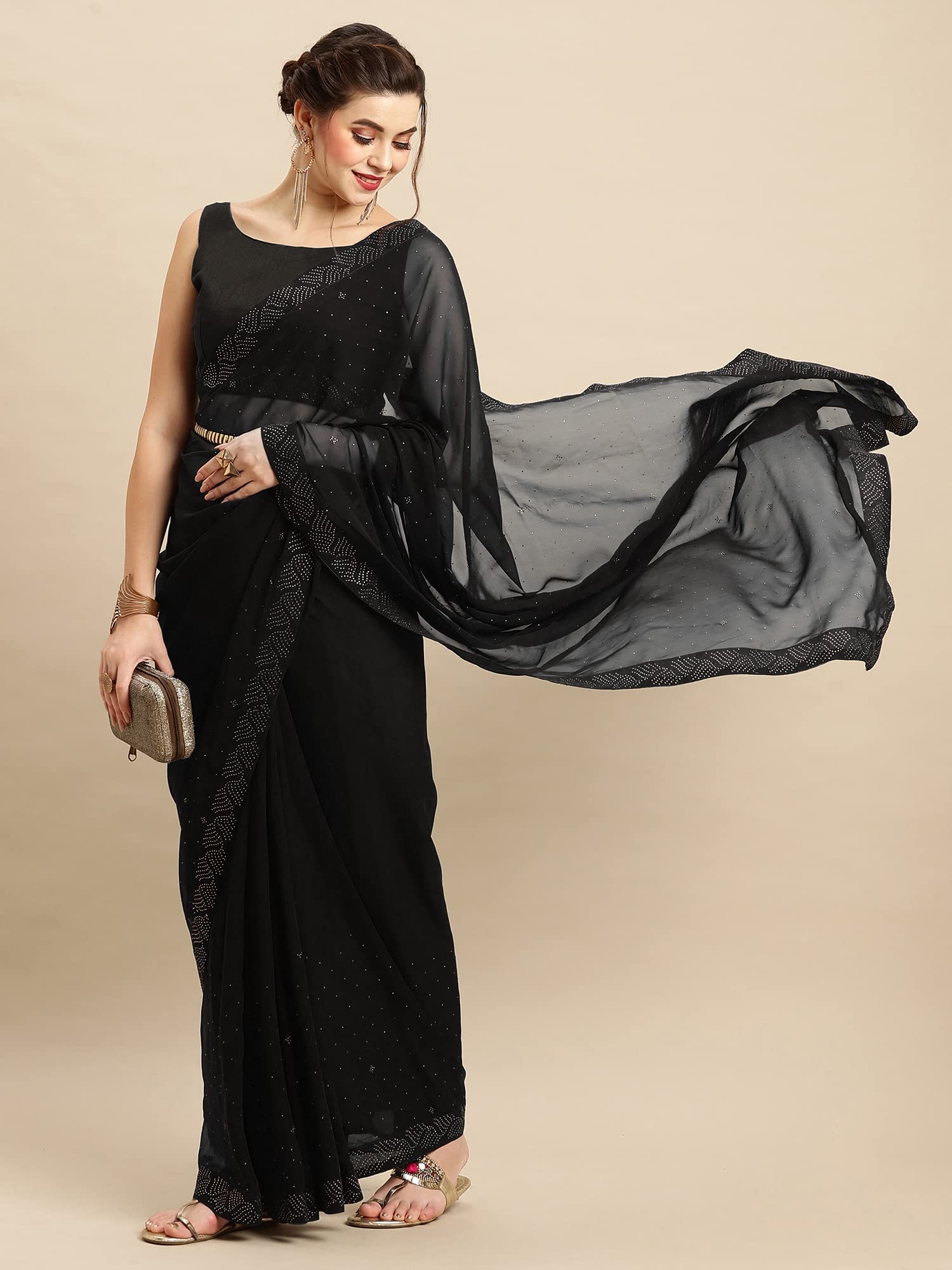 AKHILAM Women's Georgette Lace Work Embellished Designer Saree With Unstitched Blouse Piece (Black_GLMP902D)