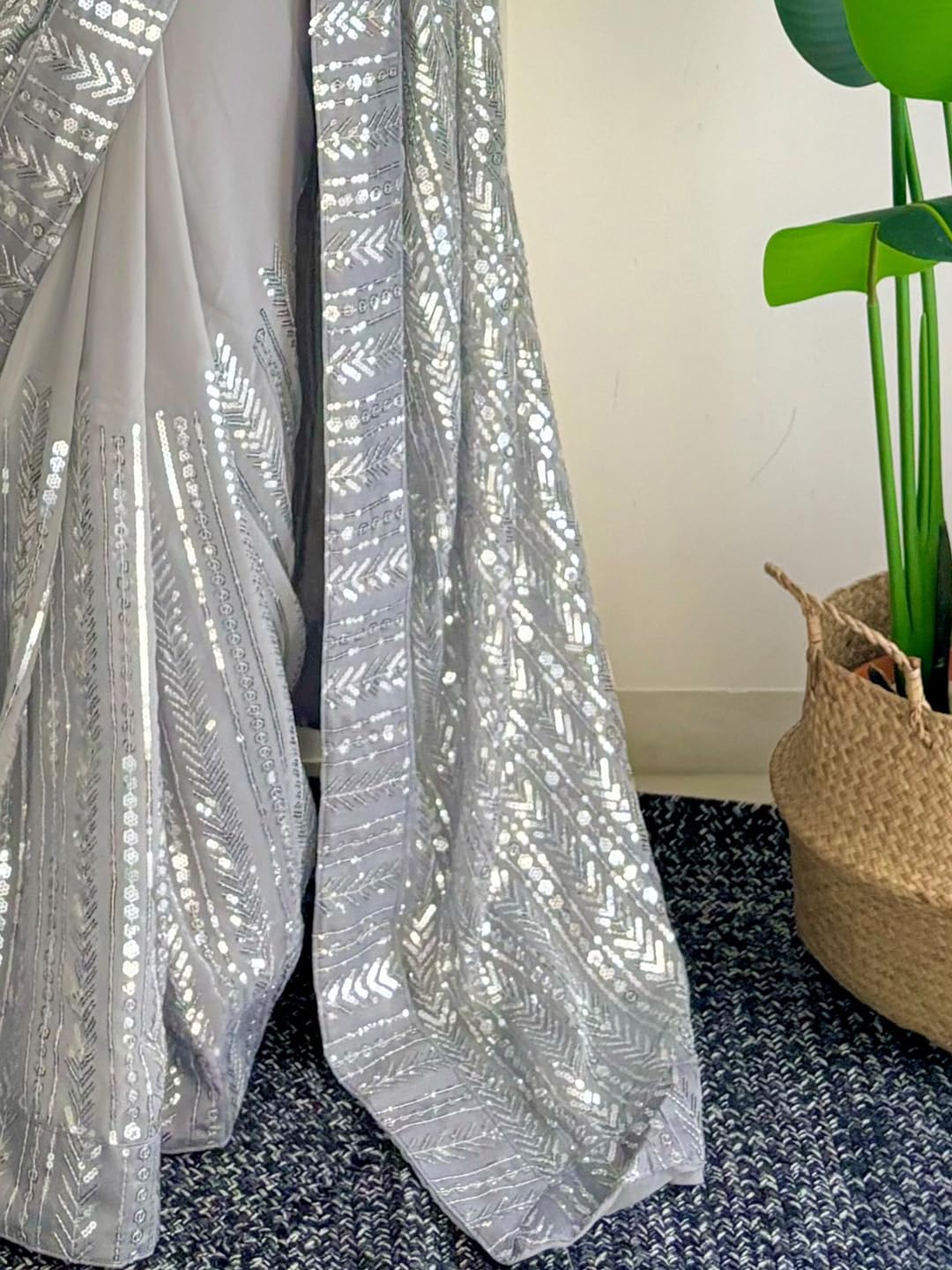 - Work Detail : Sequins Embellished Saree