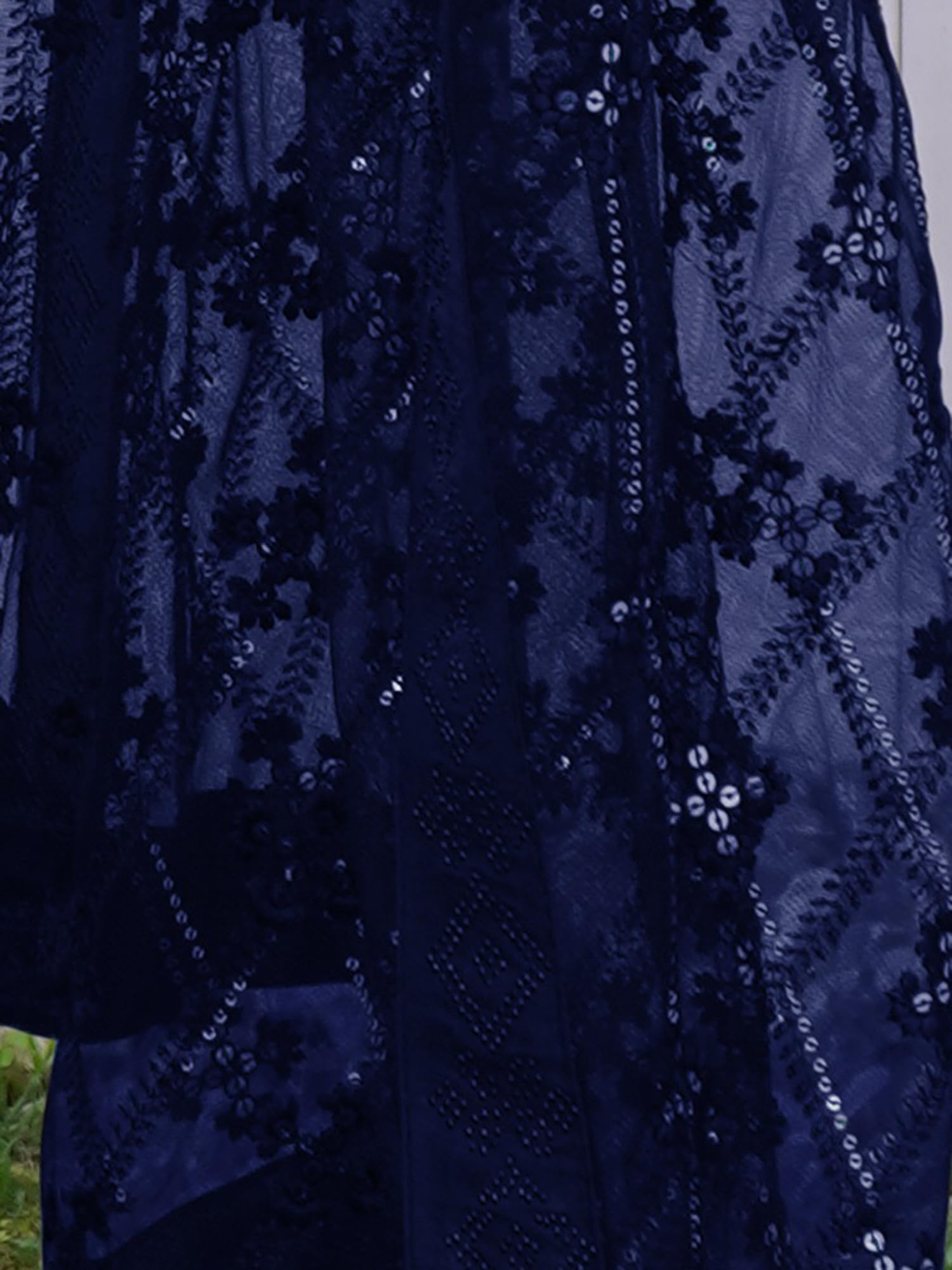 AKHILAM Women's Net Navy Blue Embellished Designer Saree With Blouse Piece (AAVYA603B_HV)