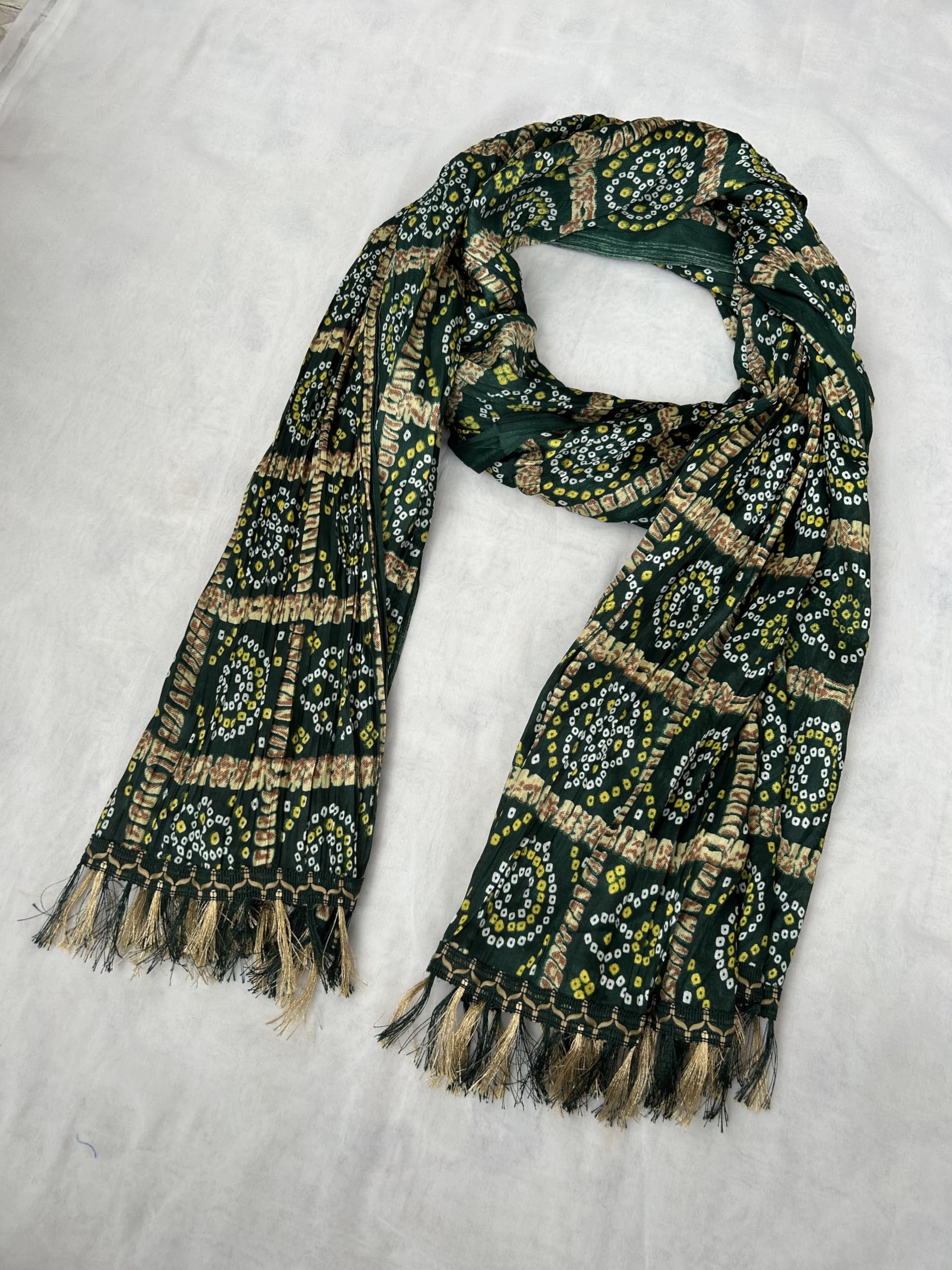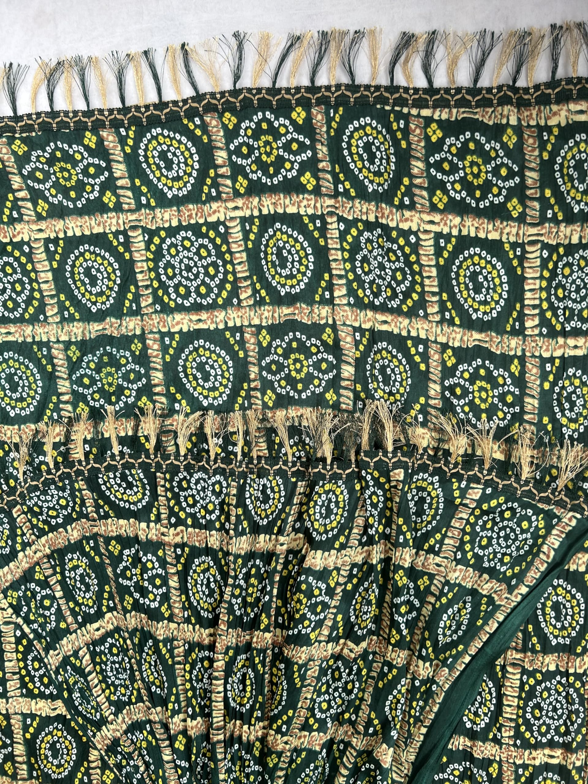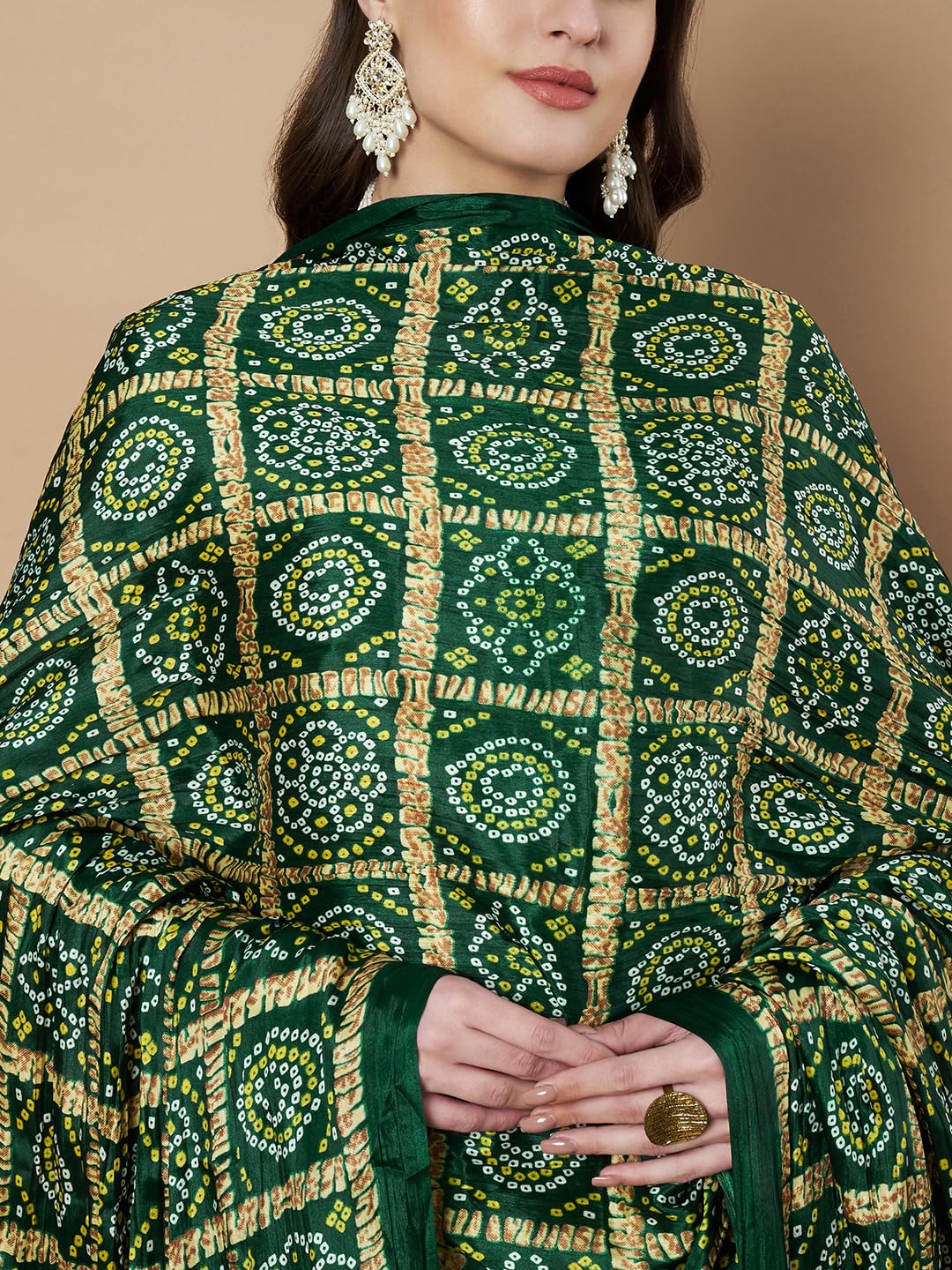 AKSHADEEP Women's Bandhani & Patola Printed Dupatta - Traditional Art Silk Dupattas Chunnis (Green), 2.20 Meters