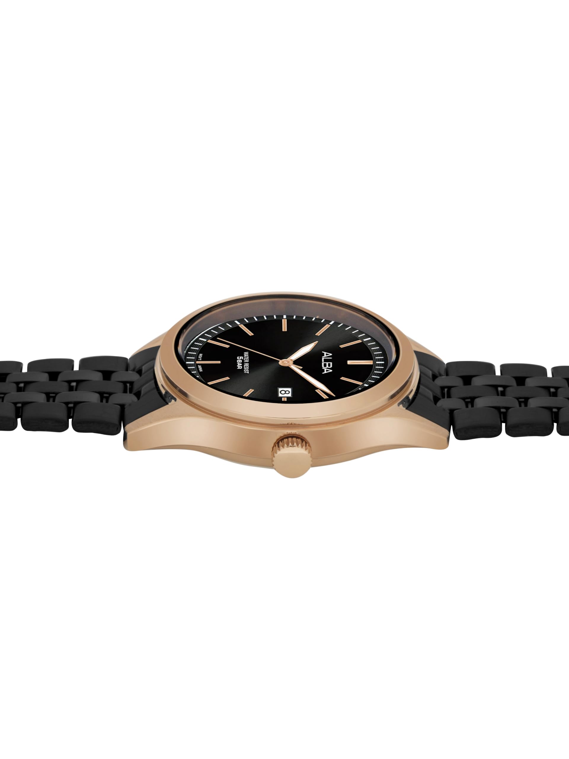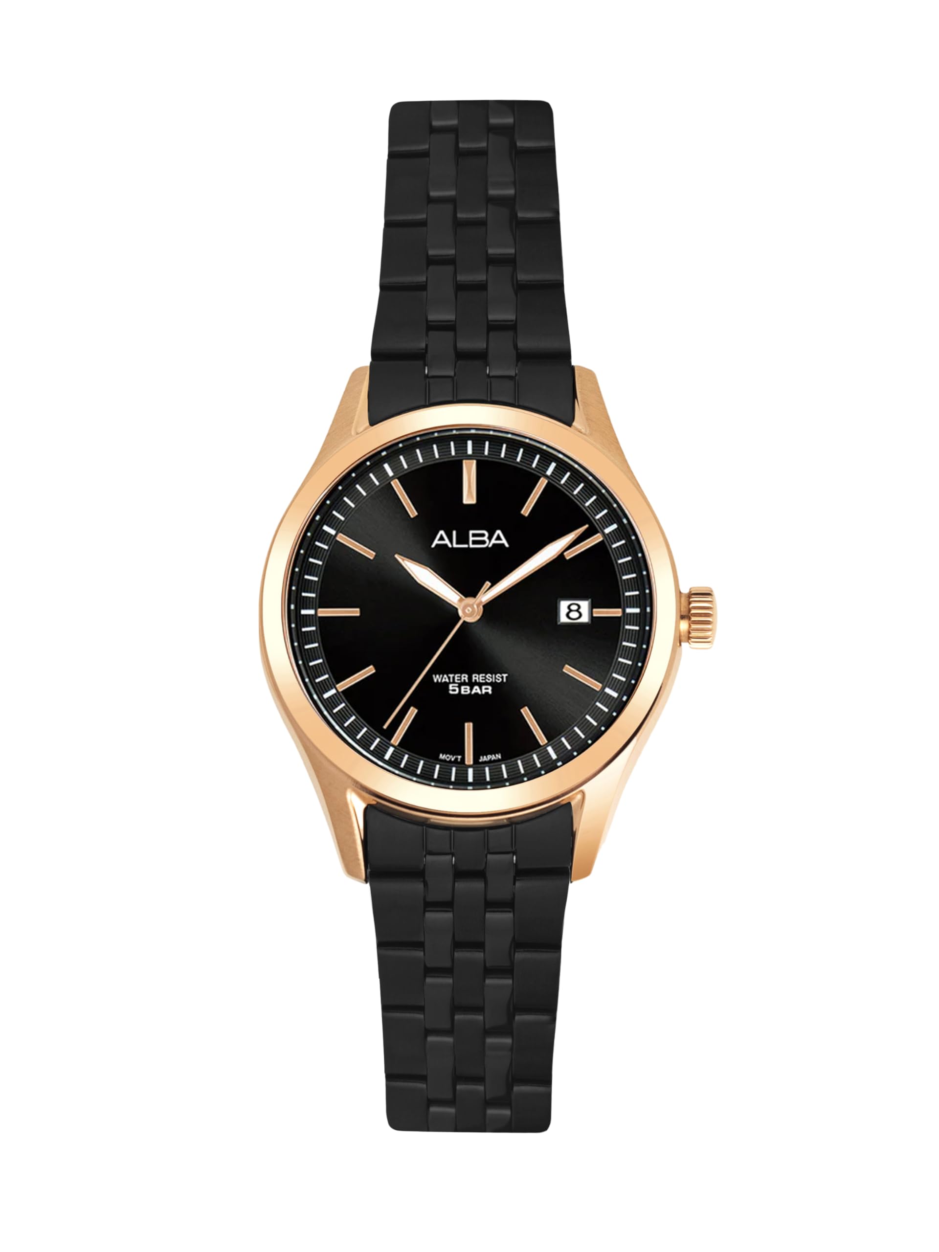 ALBA Stainless Steel Women Analog Wristwatch Ah7Ce2X1, Black Dial, Black Band