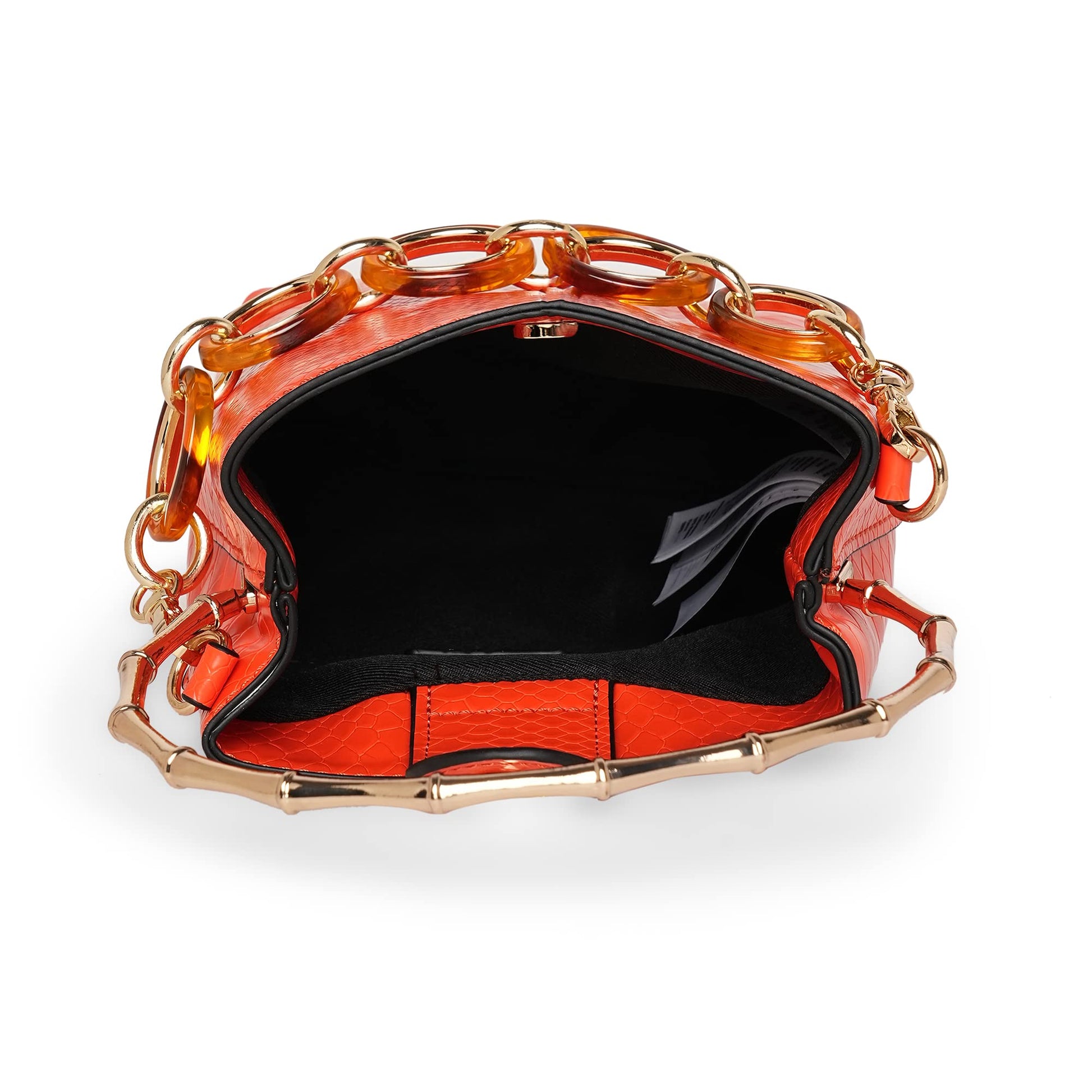 - Fashion just met function with our roomy Kayannie bucket-style handbag. Snake embossed finish with bold chain detailing keep it super chic while the crossbody strap ensures total versatility.