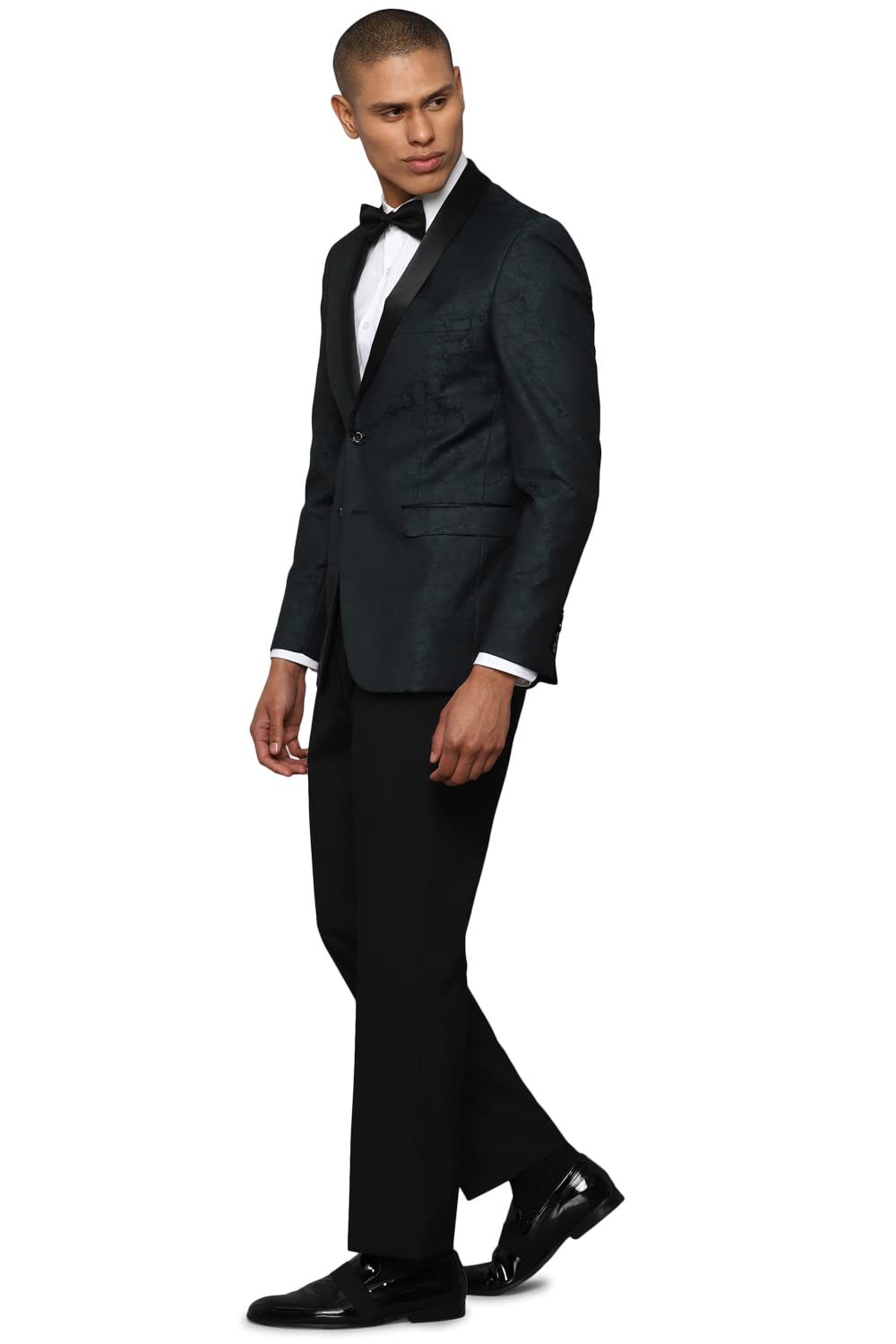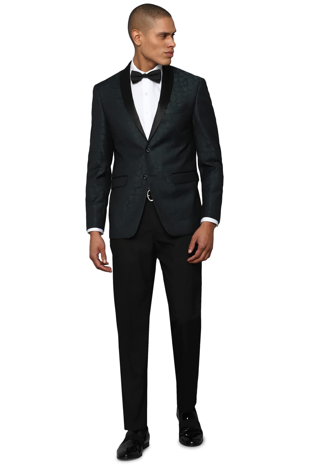 Look sharp and stylish at your next party with this sleek black Allen Solly two piece suit. The slim fit of this print patterned suit creates a flattering silhouette for men. Perfect for any occasion, with its two button suit front it exudes sophistication. Whether you`re going for a classic or trendsetting look, maximize your style with the versatility of this suit. Get ready to impress without sacrificing confidence and comfort, as Allen Solly delivers a blend of fashion and function in one stunning piece.
