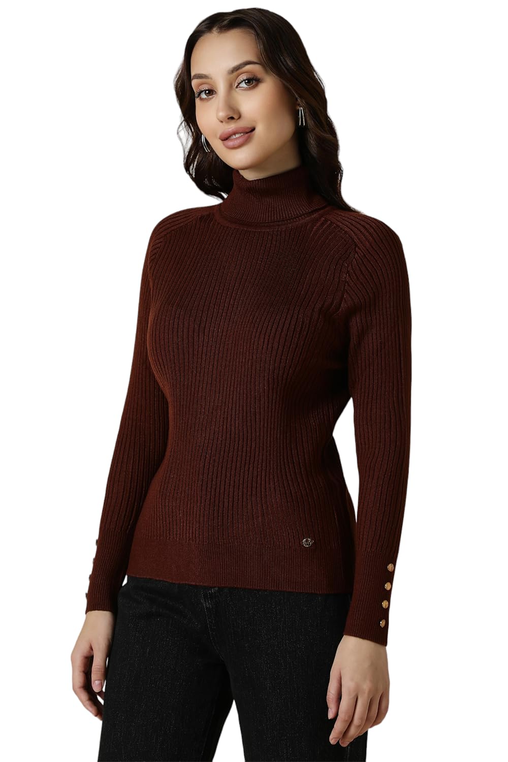 Allen Solly Women Brown Stripe Turtle Neck Casual Sweater