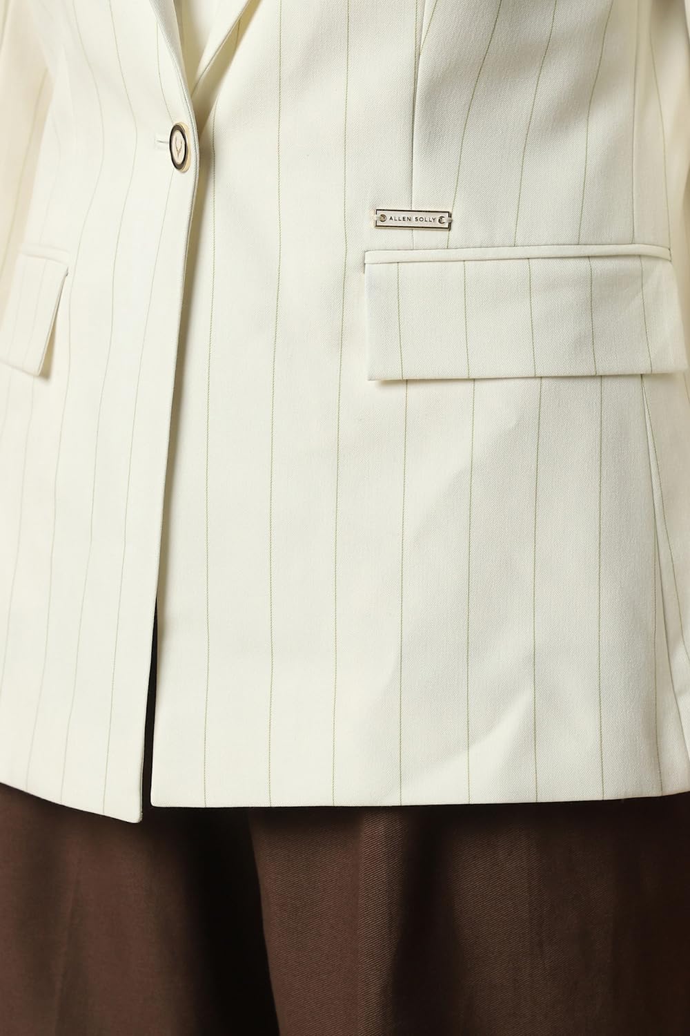 Elevate your formal look with the Allen Solly women`s blazer. This cream-colored piece features a striking stripe pattern and a tailored fit that exudes elegance. Crafted from a premium blend of polyester, viscose, wool, and spandex, it ensures both comfort and sophistication. With a single button closure, this versatile blazer is perfect for professional settings or upscale events. Embrace a refined style and make a lasting impression with this essential wardrobe addition.