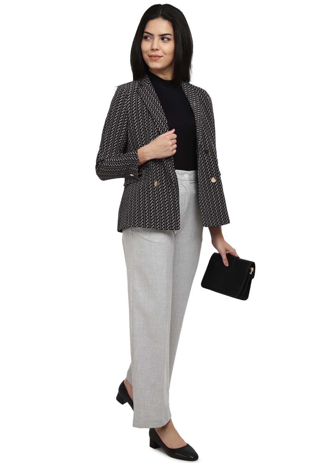 Don this Grey Print blazer from Solly and Allen Solly to look your best.