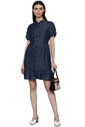 Allen Solly Women's Lyocell Shirt Above The Knee Dress (AHDRCRGFB24786_Navy_XL)
