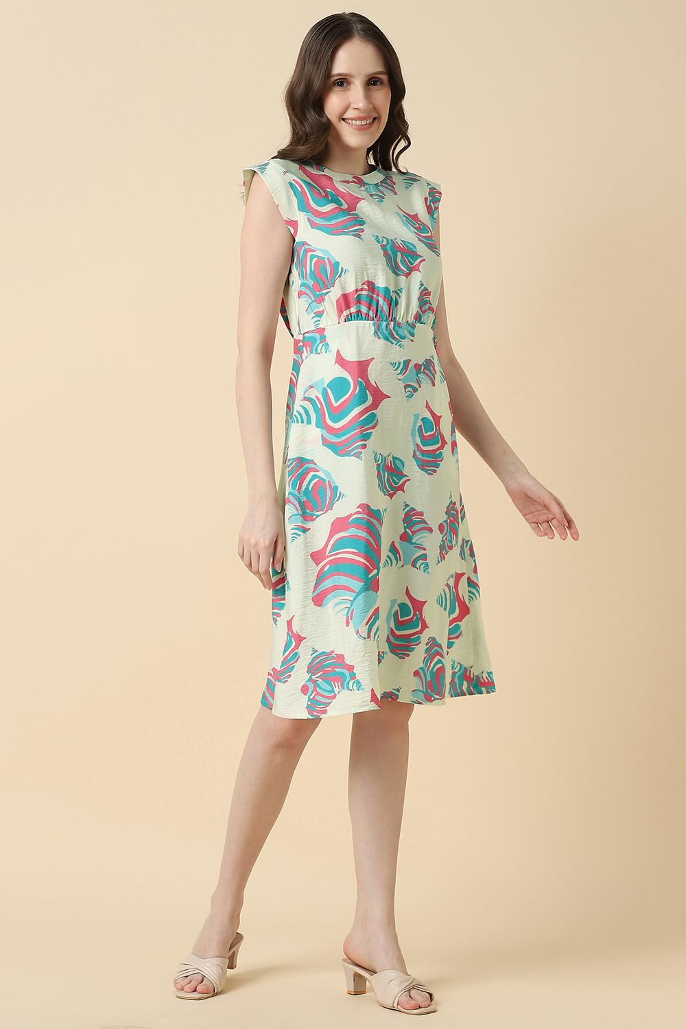 Experience effortless elegance with the Allen Solly women's casual dress in a chic beige print. Crafted from a lightweight blend of rayon and nylon, this regular fit design features a flattering round neck and stylish cap sleeves, ensuring breathability and comfort. Perfect for day outings or weekend brunches, this dress embodies modern sophistication while offering versatility for various casual occasions. Transform your wardrobe with this timeless piece that complements your unique style.