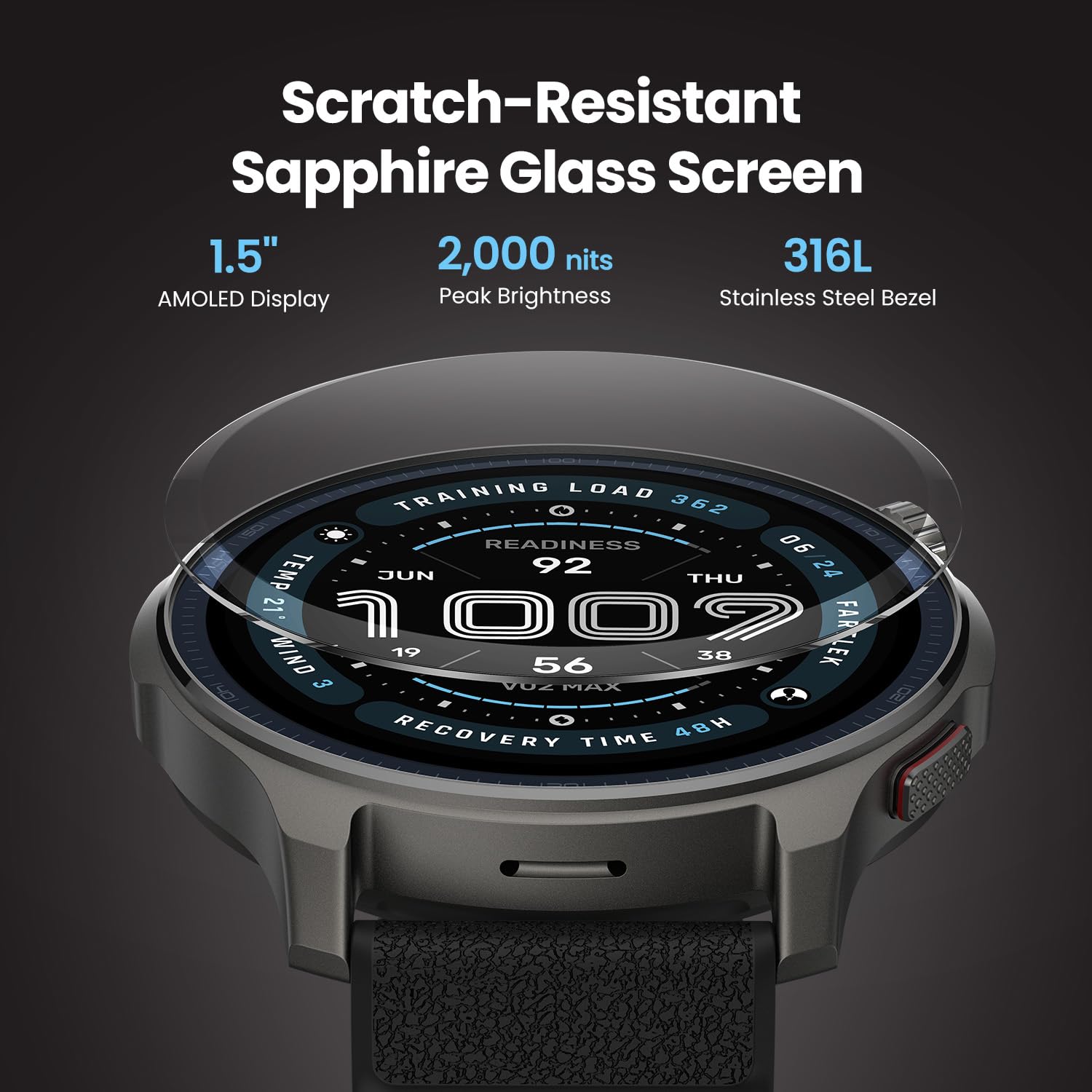 - Built for Performance and Style: The sleek aluminum body and 1.5" durable sapphire crystal glass screen of the Balance 2 smart watch offer a premium, resilient design, while dual speakers provide clear audio cues during training.