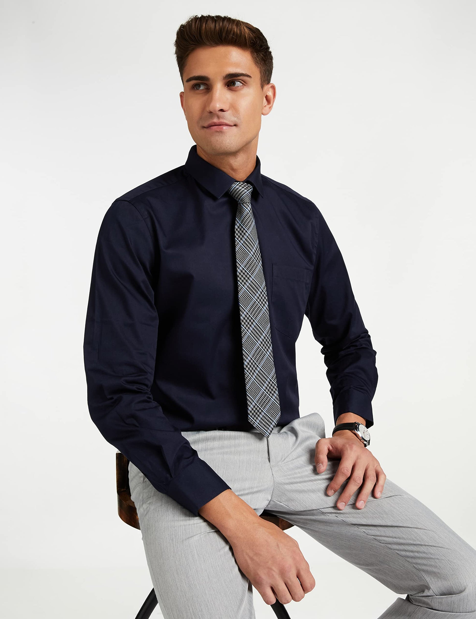 Amazon Brand - Symbol Men's 100% Cotton Slim Fit Formal Shirt Navy 38
