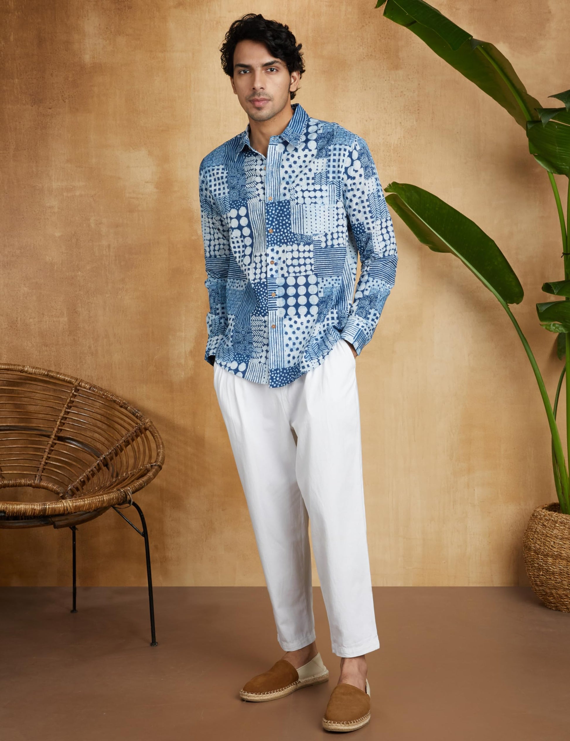 - This Block Printed shirt is meticulously crafted using Indigo Dyes derived from the natural indigo plant leaves. The natual dye can be used in tie-n-dye, Shibori or block prints.