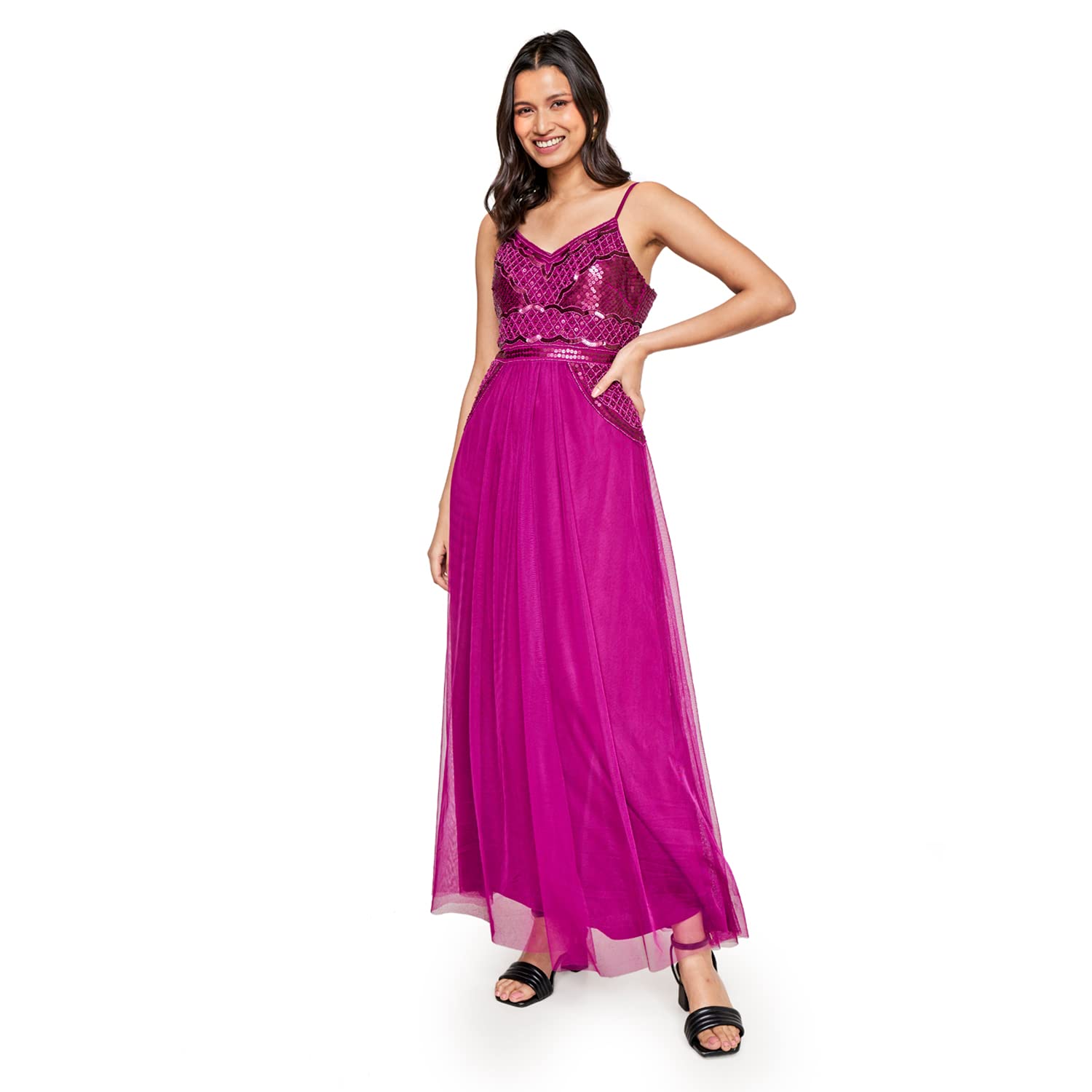 AND Women's Polyester Fit Flare Short Length Dress (FW22AP006MXVN_Wine_M)