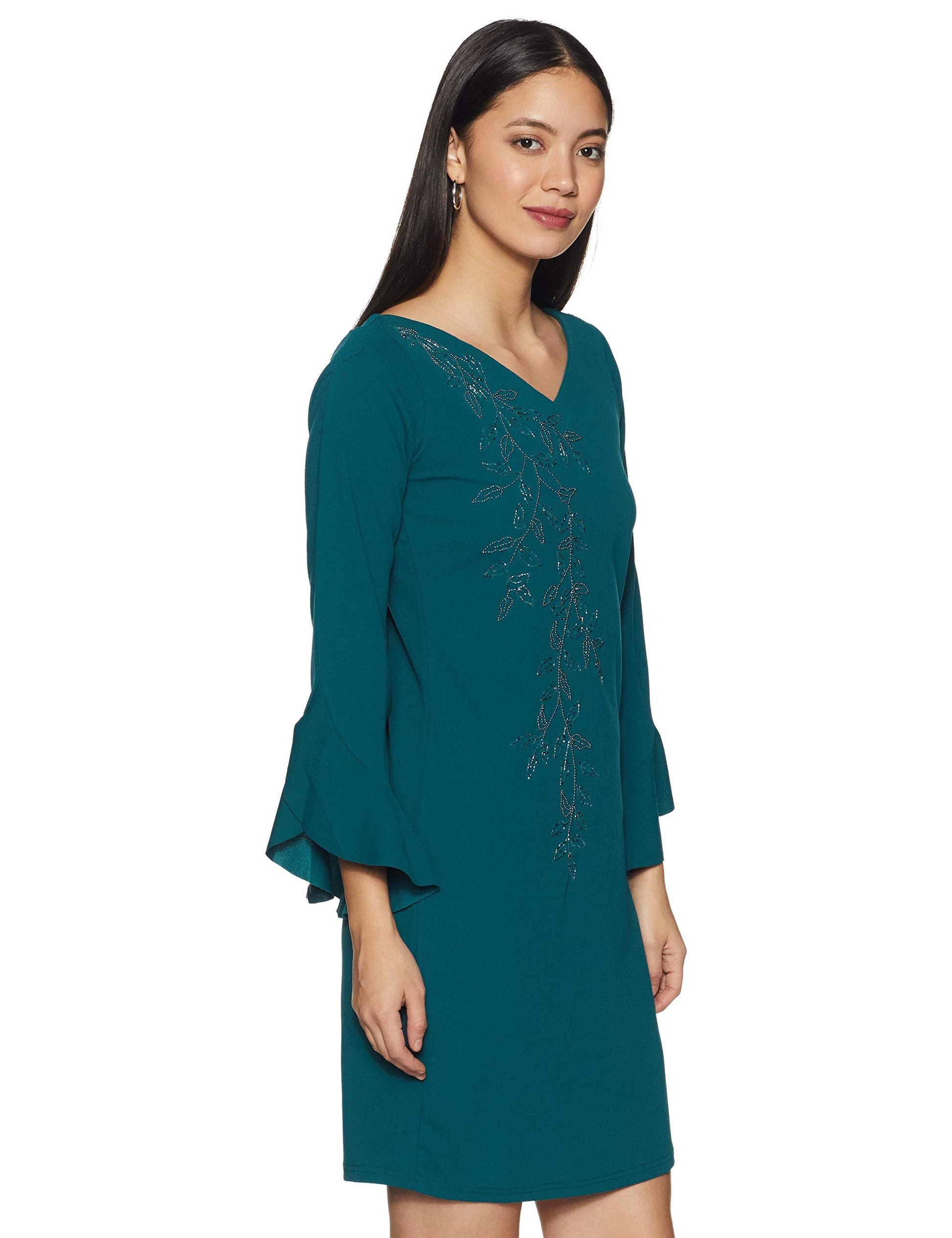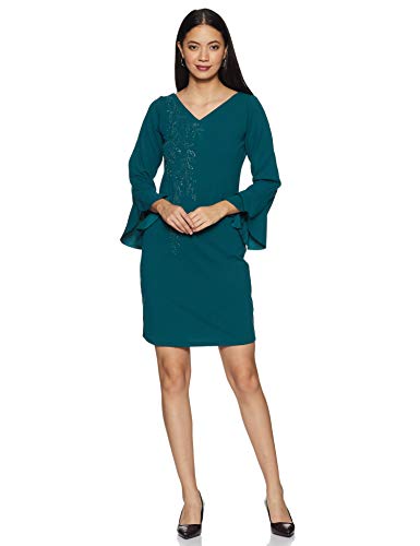 AND Women's Synthetic A-Line Knee Length Dress (AW19AT117DRSCTEAL10_Teal_10)