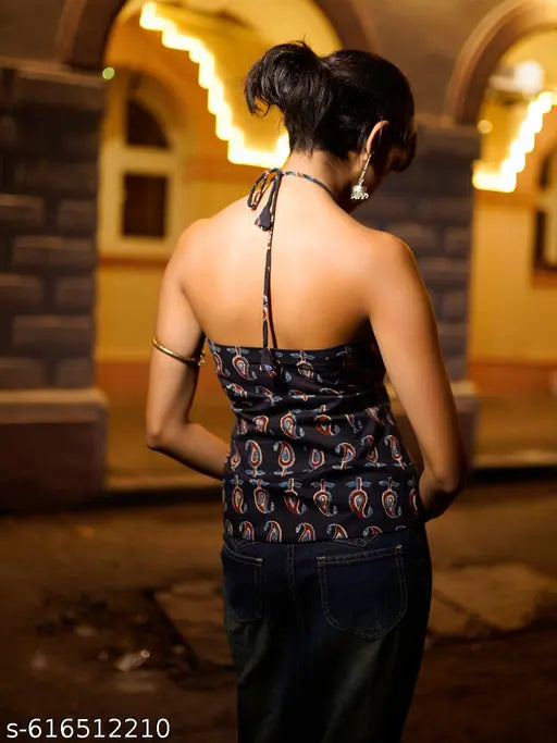 NameAnni Designer Women's Rayon Viscose Navy Sleeveless Kurti with Beautiful Floral Printed Work, Elegant Ethnic Top for Festive, Casual & Daily Wear, Stylish Designer Kurta for Women and Girls